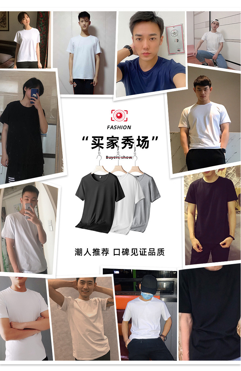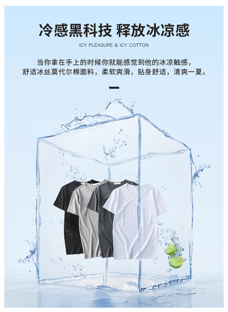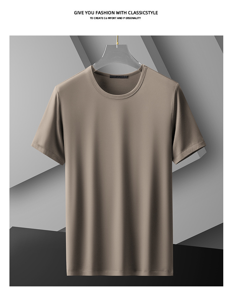 冰丝短袖T恤夏季冰爽丝滑男桑蚕丝衣服韩版宽松薄款半袖男装体恤