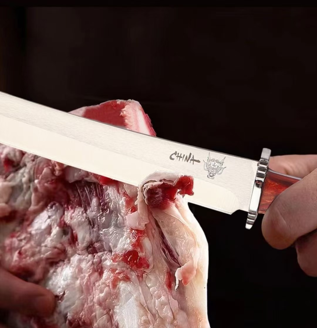 紅檀木真鍛造分割刀肉枠専用骨切り刀鋭利料理人包丁肉屋豚肉刀5cr15