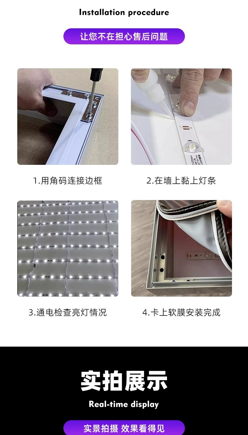 内外ドア用カブライトボックス、携帯電話ショップ、ショッピングモール用壁掛けLEDライト広告板、ソフトフィルム超薄型フレームレスライトボード
