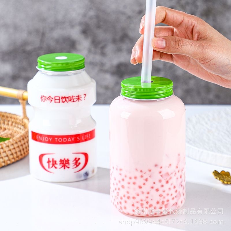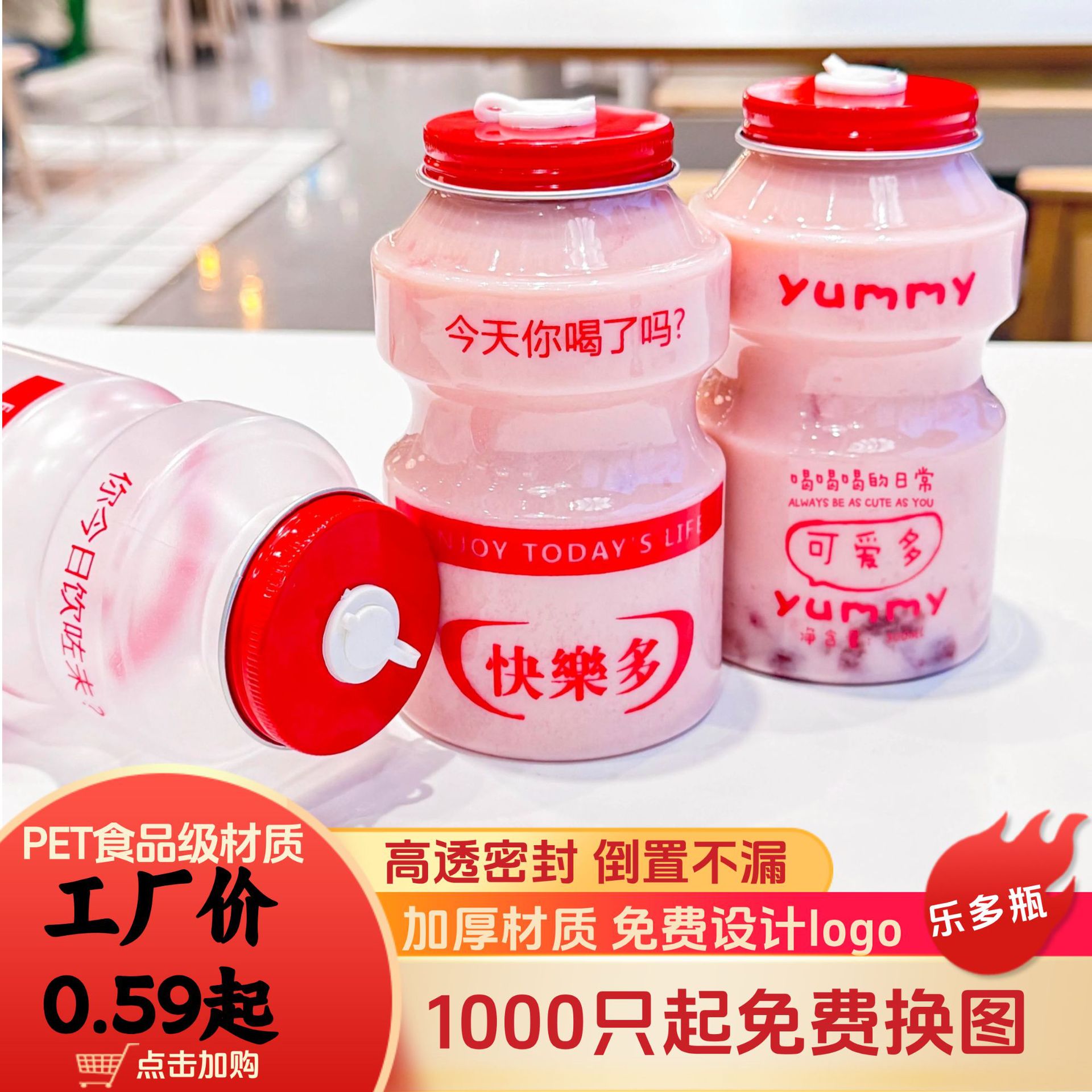 网红养乐瓶快乐多可爱多奶茶杯红色盖子PET饮料果汁瓶手摇酸奶瓶