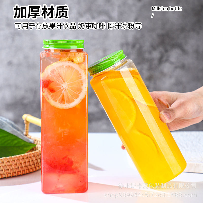 ネットレッドミルクティーカップ使い捨て蓋付きスクエアジュース飲料瓶pet商用包装素匠泰カップ