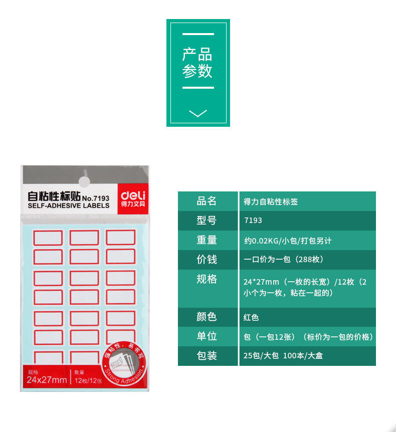 得力标签贴商品价格签标贴自粘性标签纸不干胶贴纸办公用品标签
