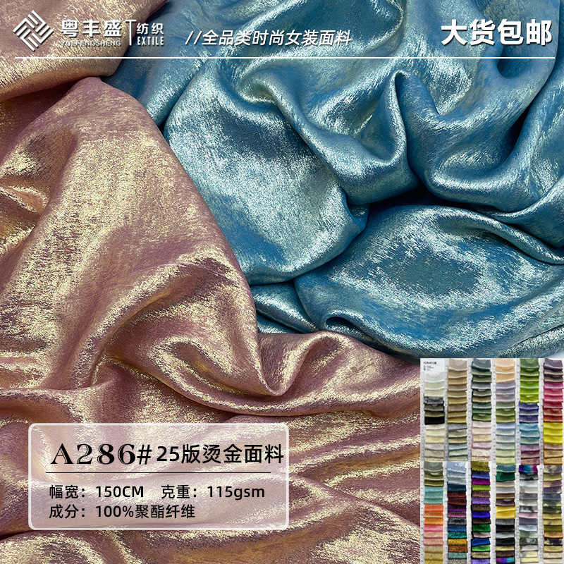 ベルベットホットスタンピング生地ポリエステルフルホットスタンピング光沢のある模擬シルク生地シャツドレスドレス生地
