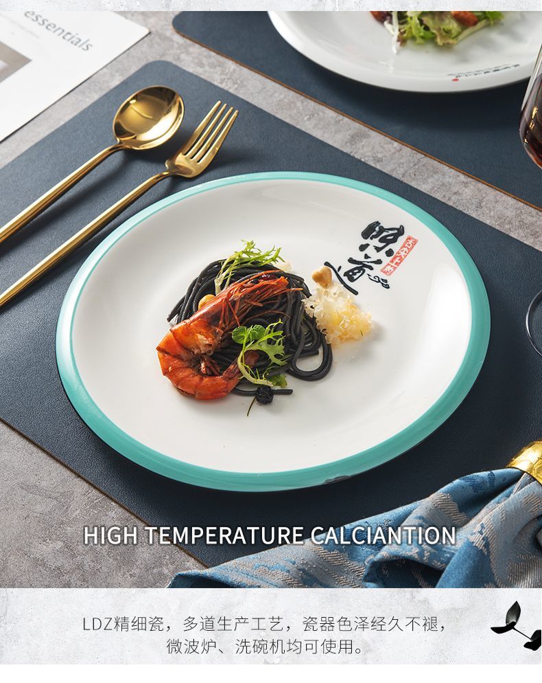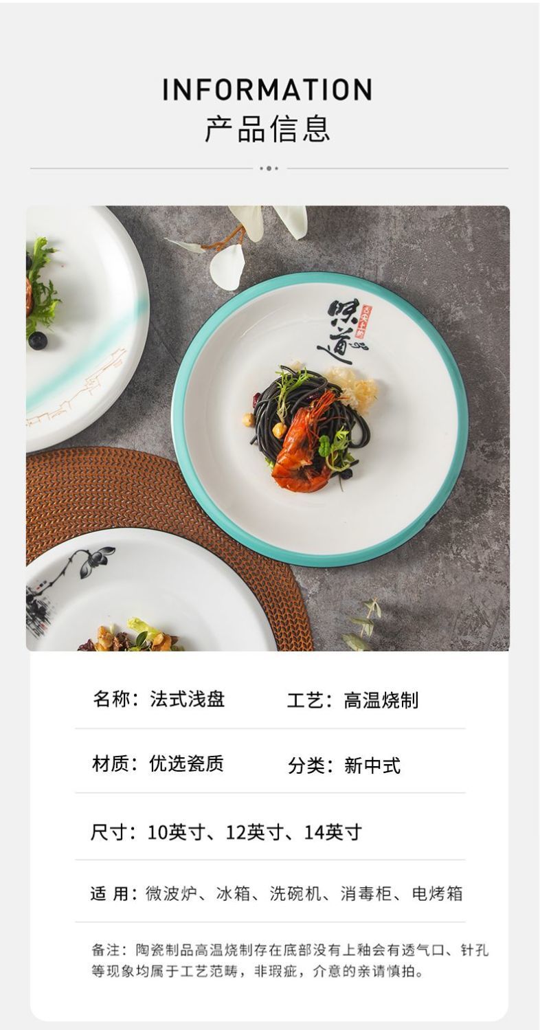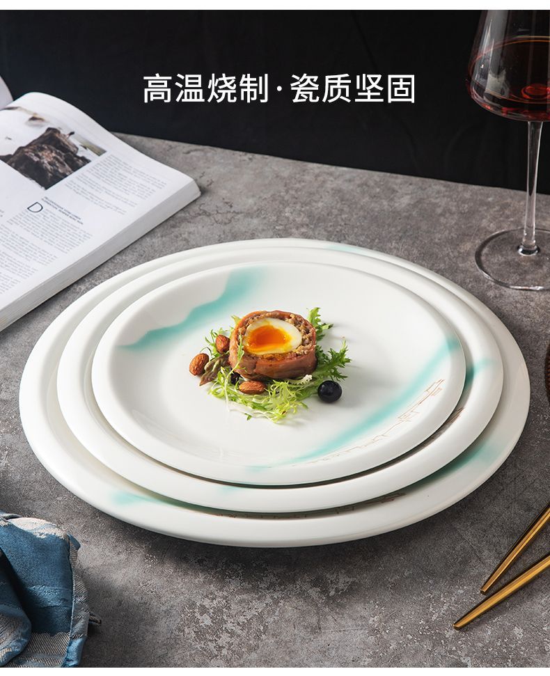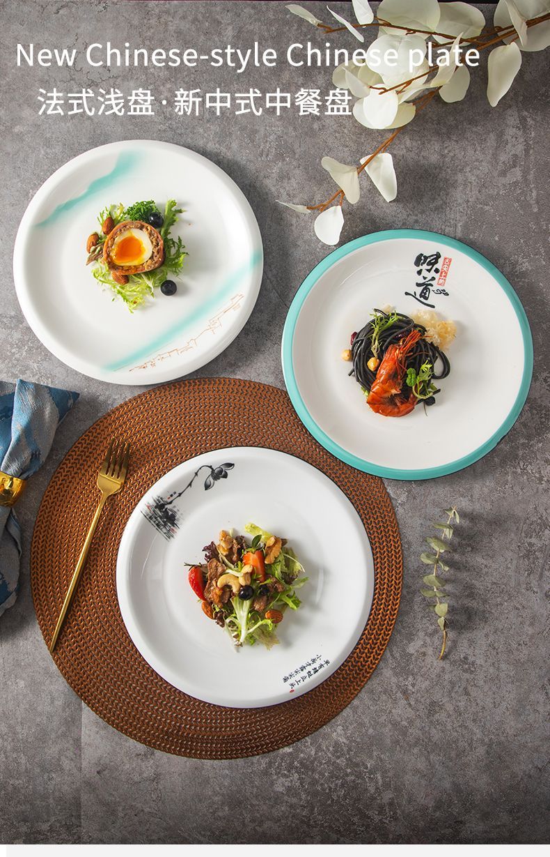 中国式浅盤陶磁器平盤家庭用釉薬下彩盤円盤料理盤商用レストラン中国風置物食器