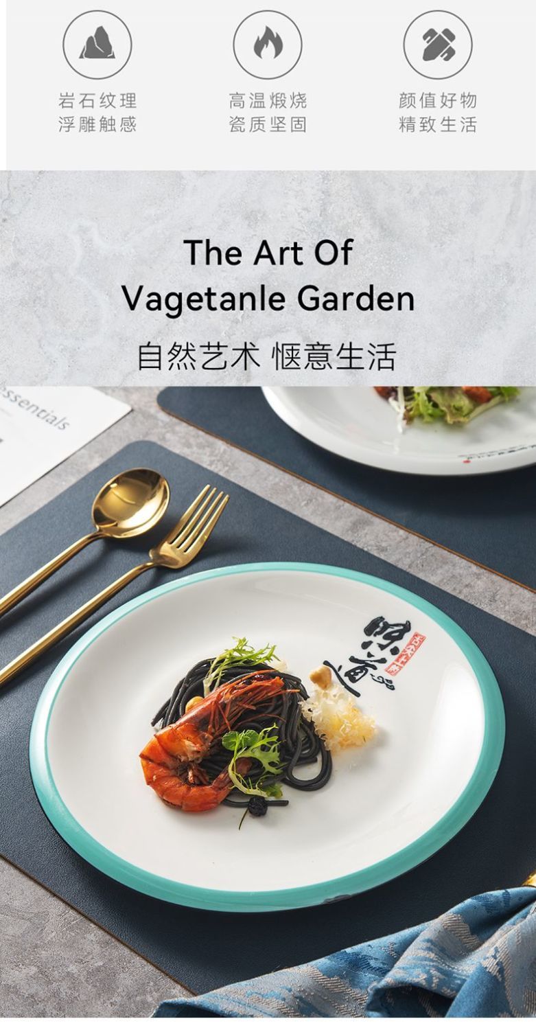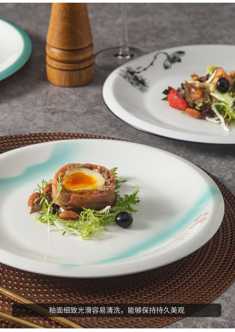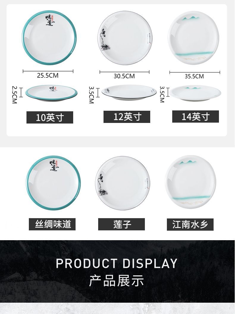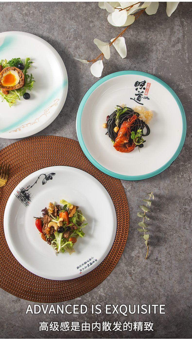 中国式浅盤陶磁器平盤家庭用釉薬下彩盤円盤料理盤商用レストラン中国風置物食器