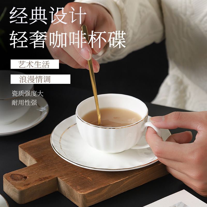骨磁器金辺コーヒーカップセット小豪華陶磁器イギリス式カップ皿ホテルアメリカヨーロッパ式コーヒー器具ロゴ