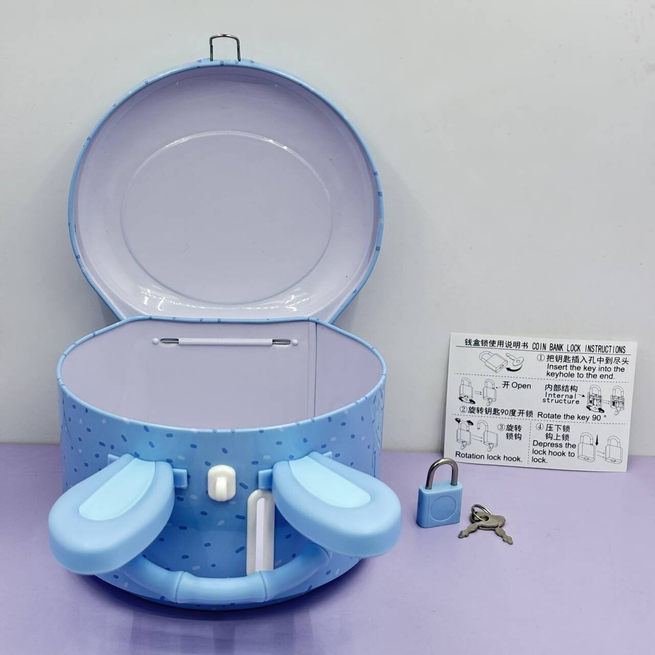 丸い貯金箱アニメ創意韓国版ブリキ小銭缶錠付き幼稚園児プレゼント鉄箱