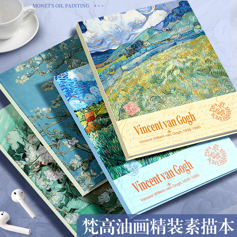 A4 ゴッホ油絵スタイルハードカバースケッチブック美術学生特別な絵画ブック厚いハード表面スケッチブランクブック手描き