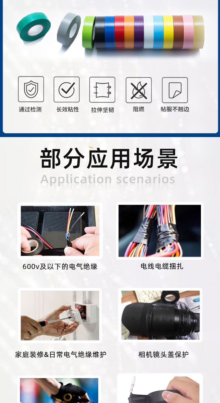 工場直販 PVC電気絶縁テープ 電気難燃性 防湿 耐寒 耐高温 超粘着 電気絶縁 多色
