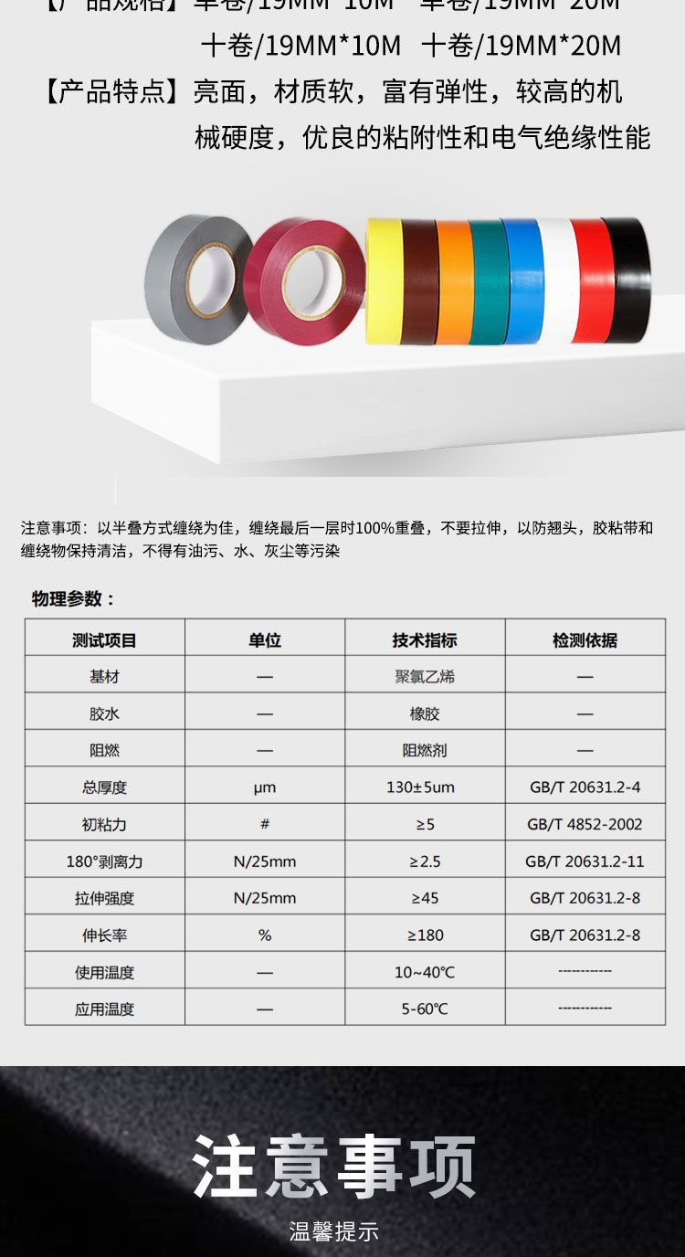 PVC电工绝缘胶带耐高温防水防潮耐磨电胶布粘力强劲PVC电工胶带
