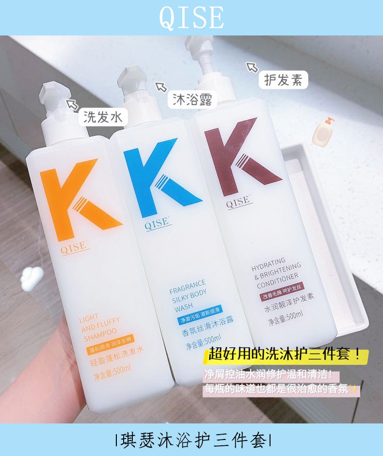 琪瑟K洗发水蓬松控油洗发水留香护发素沐浴露QISE水润洗护套装