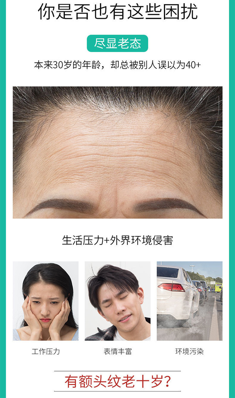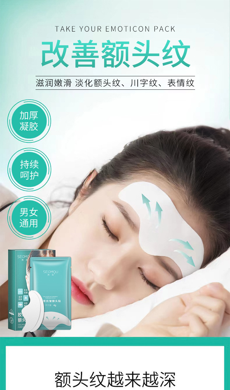 微晶コラーゲンの額に川の字の紋様を貼ってしわに抵抗します。