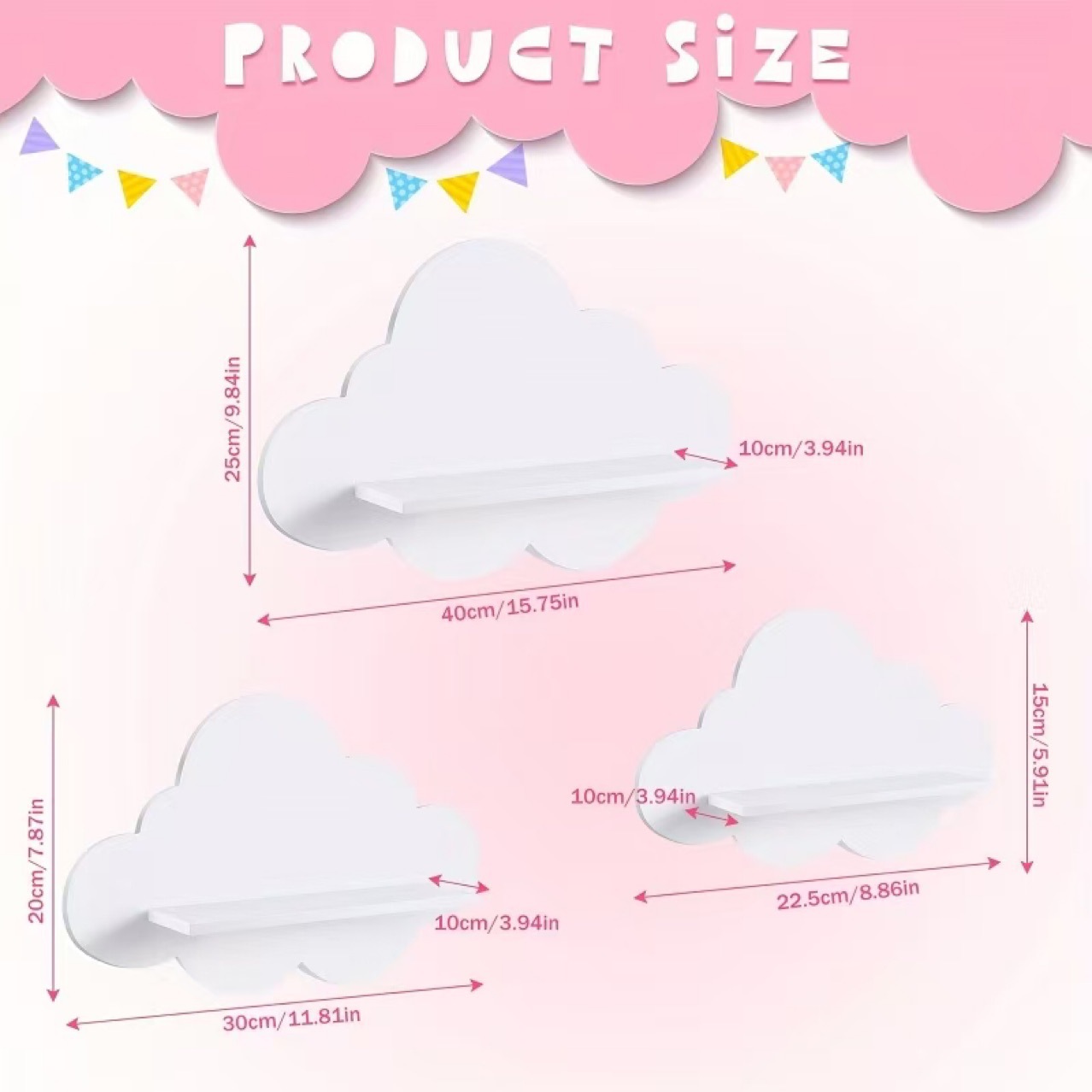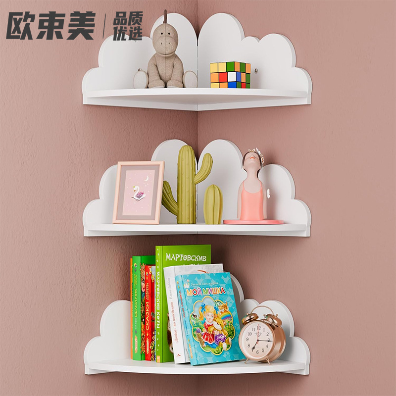 壁掛け式で穴あけ不要の雲型コーナー収納棚、かわいい子供部屋の隅の壁飾り収納棚