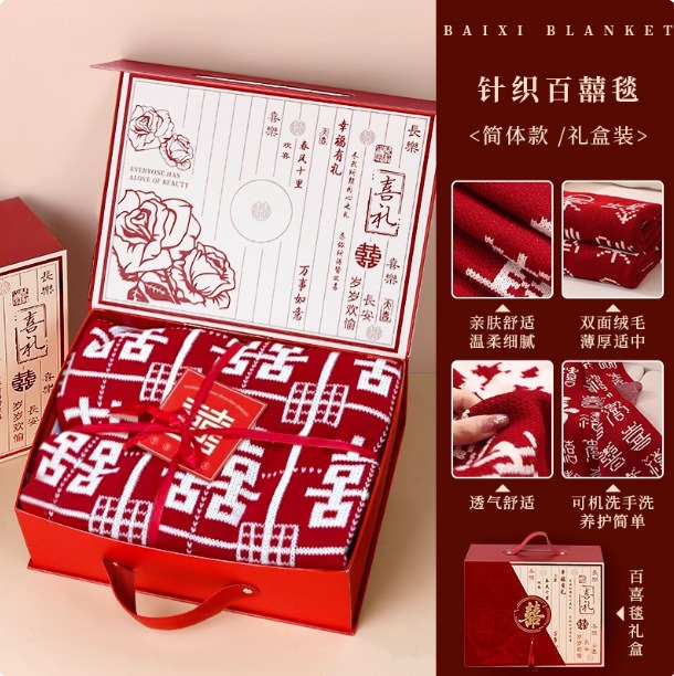 百喜图婚庆毛毯新婚乔迁礼物喜庆沙发盖毯创意礼品加厚保暖盖腿毯