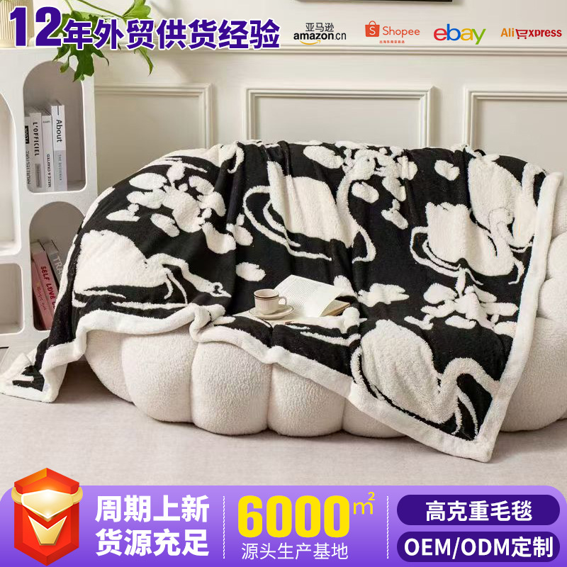 北欧简约黑白卧室毛毯阳离子提花双层盖毯午睡沙发毛巾毯