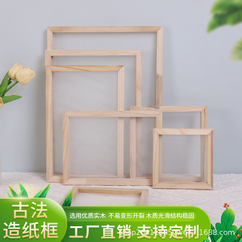 古代紙作りフォトフレーム子供の手作り紙 diy 無垢材フレーム学生研究クリエイティブ額縁木製