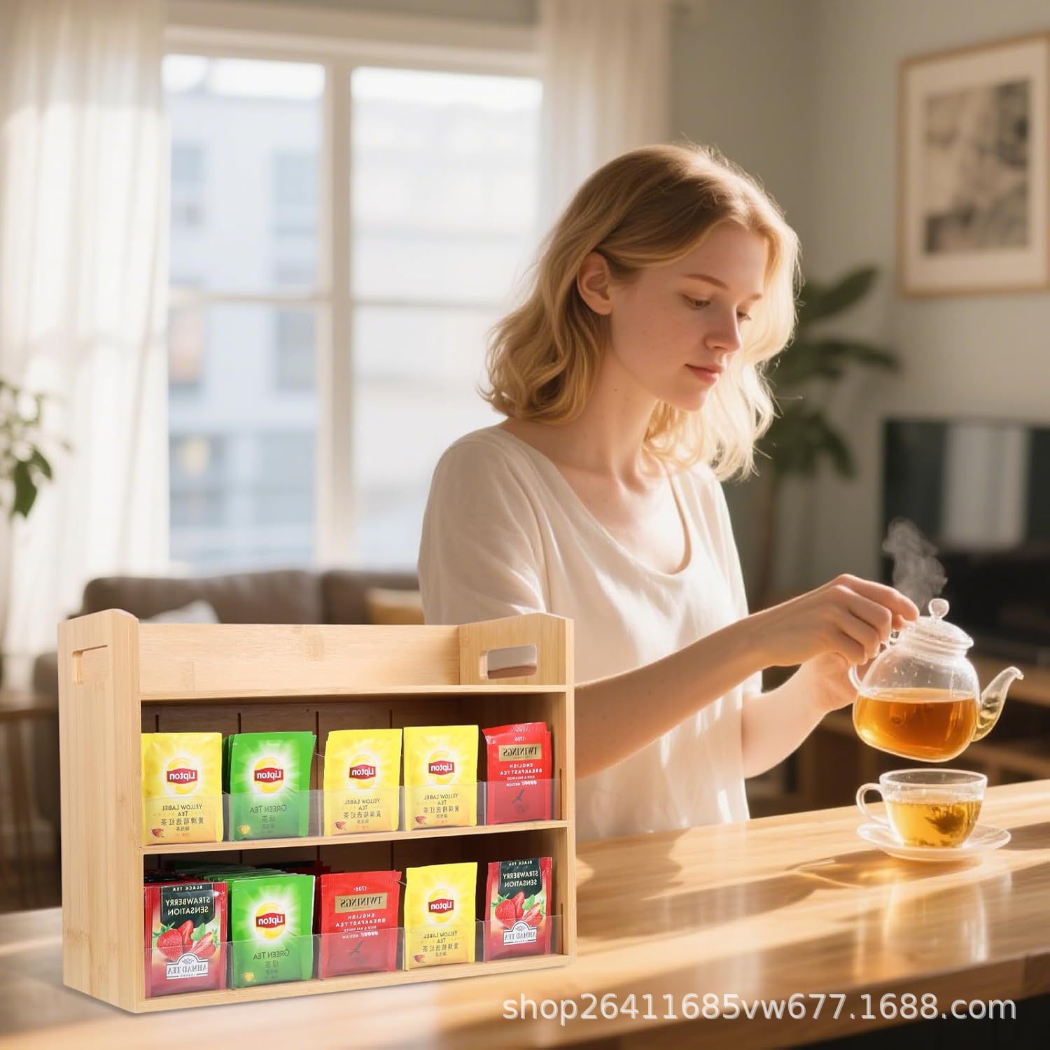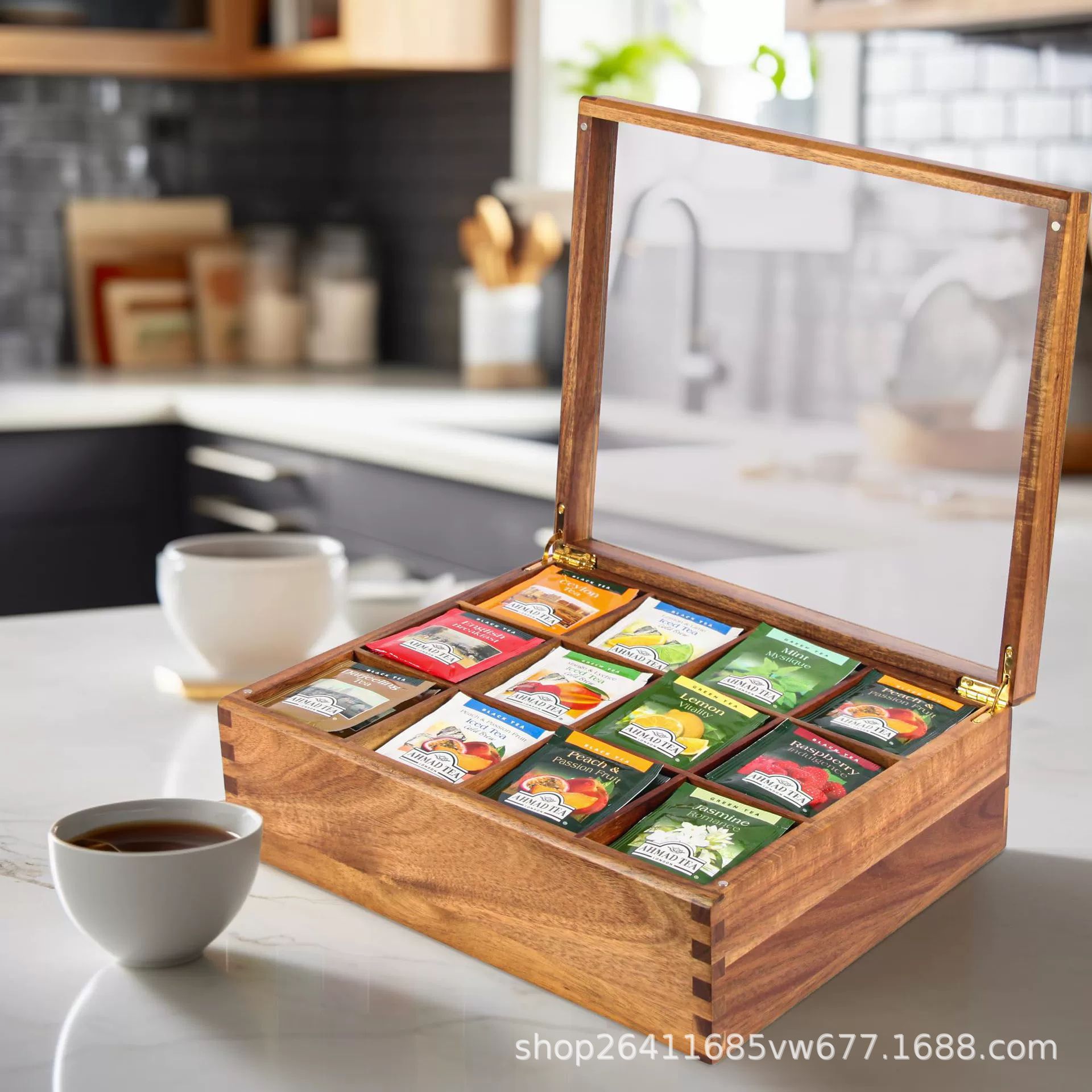 竹ティーバッグ収納ボックスキッチンカウンタートップスパイスラックオフィスティールームシュガーティーバッグコーヒーバーアクセサリーホルダー