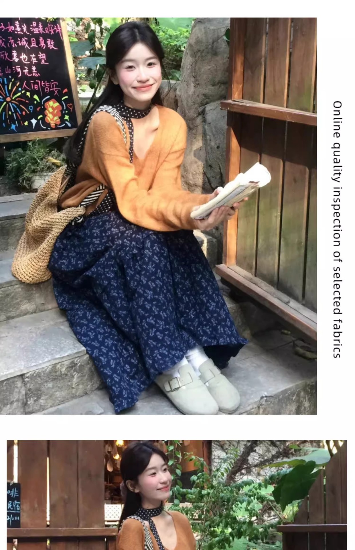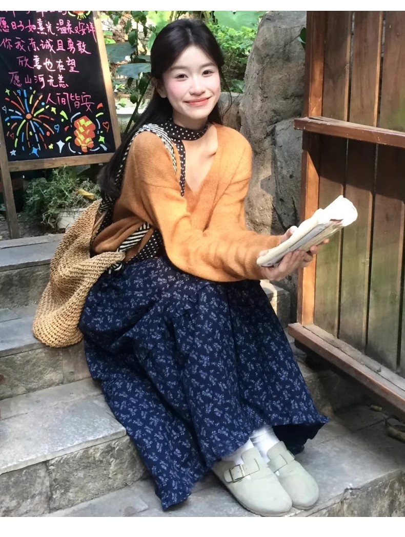 韓国式のレトロな花の半身のスカートの女性の春2025新型のハイウエストのカジュアルな怠惰な風の秋冬のケーキの長いスカート
