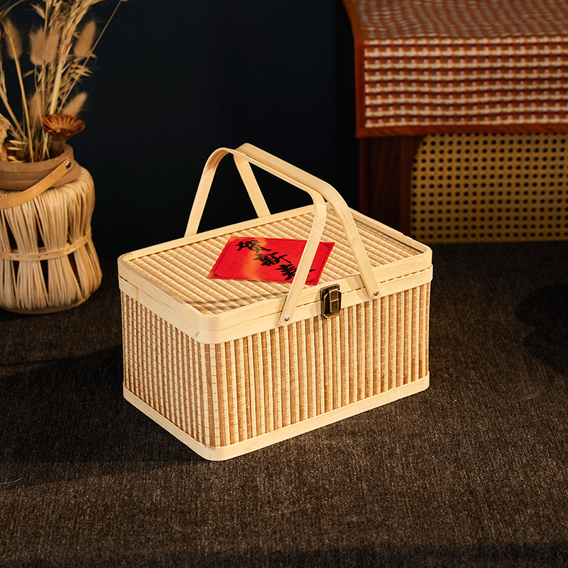 2025年新型竹編み手提げかご手提げギフトボックス包装ちまき卸売り竹かご竹包装竹かご竹かご