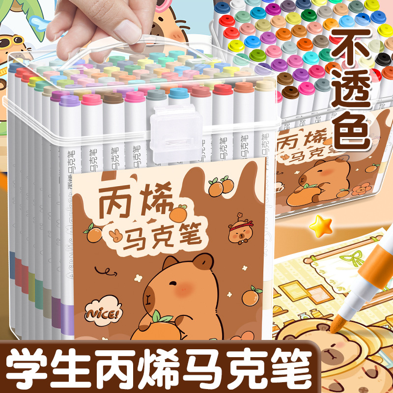 Kapibala バレルアクリルマーカーペン学生特別な水彩ペン防水超耐久性不透明色積み重ね可能な色