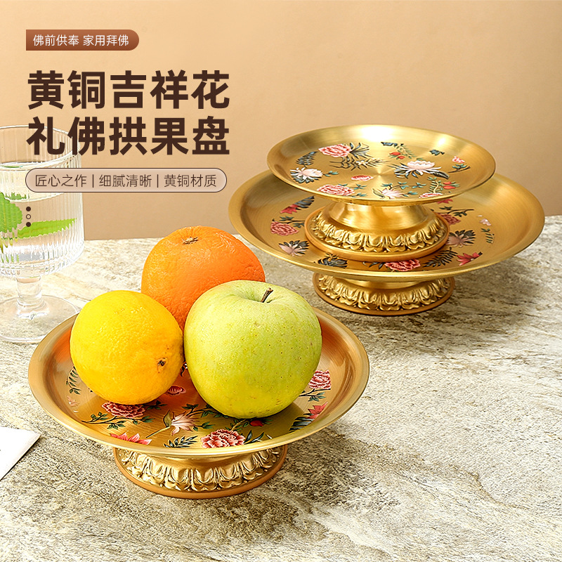 真鍮琺瑯彩フルーツプレート、仏前供養フルーツプレート、財神供養フルーツプレート、仏供養フルーツプレート、観音供養フルーツプレート、お菓子、中国風