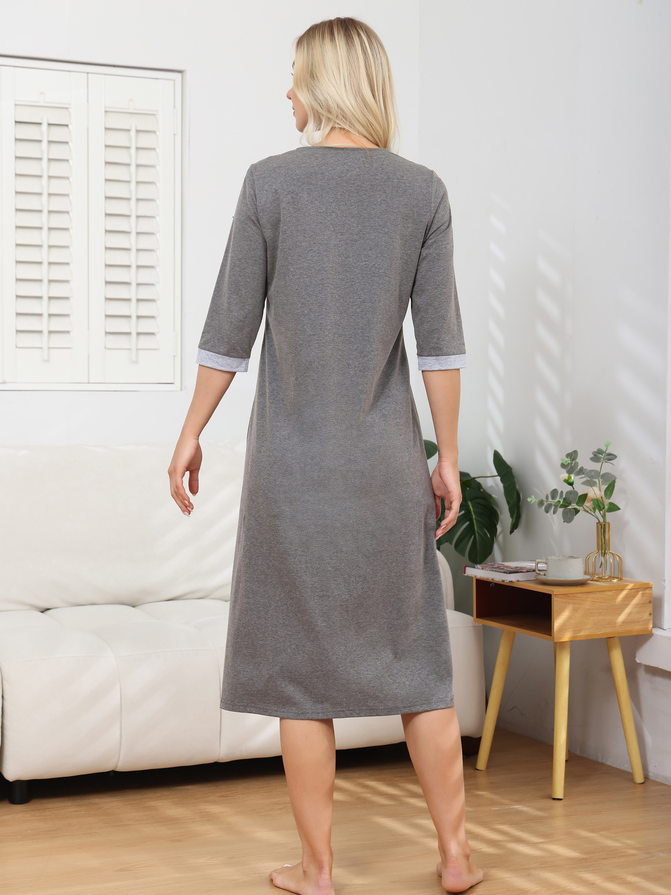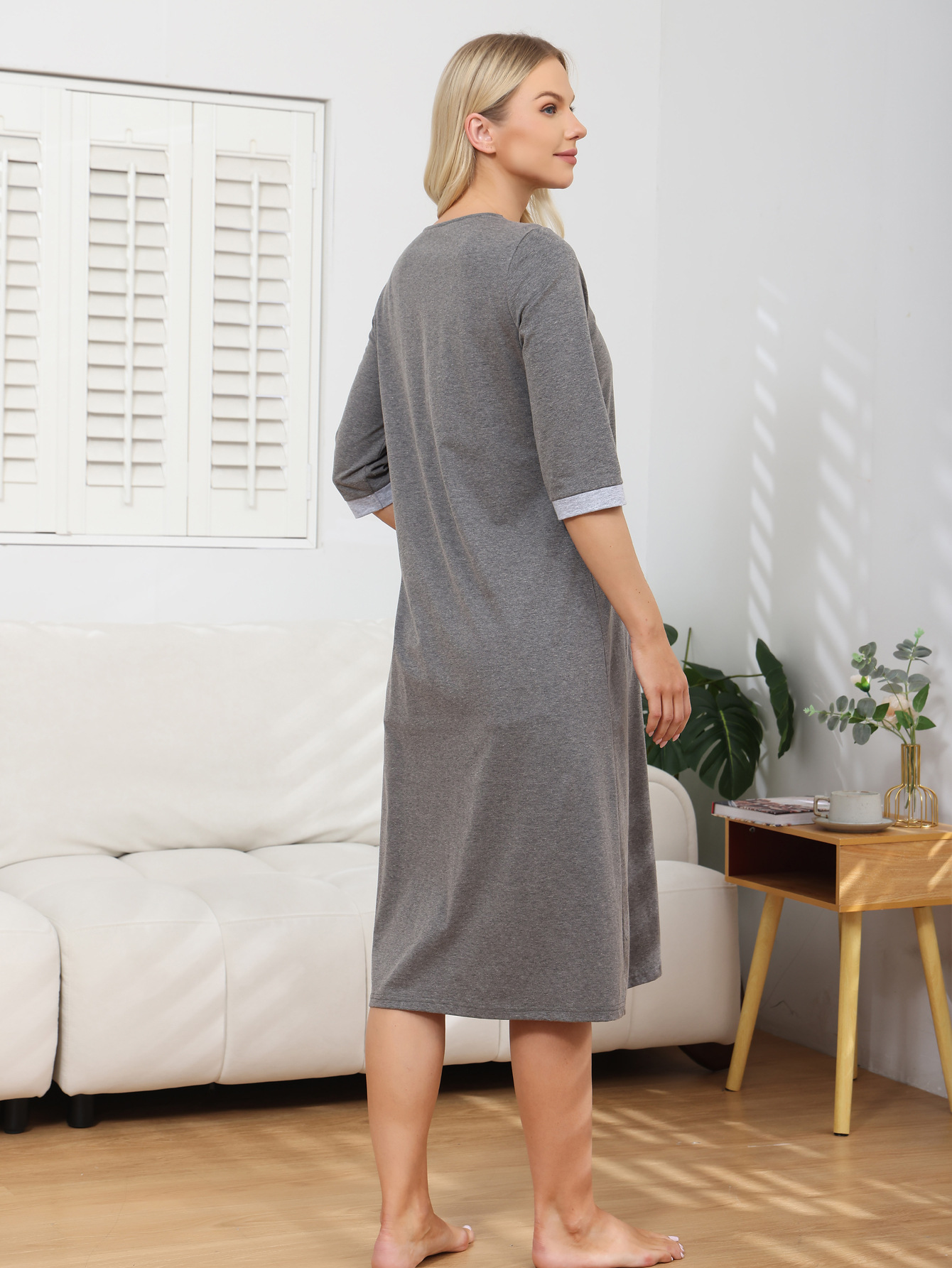 欧米2025春夏ホームウェア 快適カジュアル マタニティ授乳服 ゆったりパジャマ 七分袖 大きいサイズナイトガウン