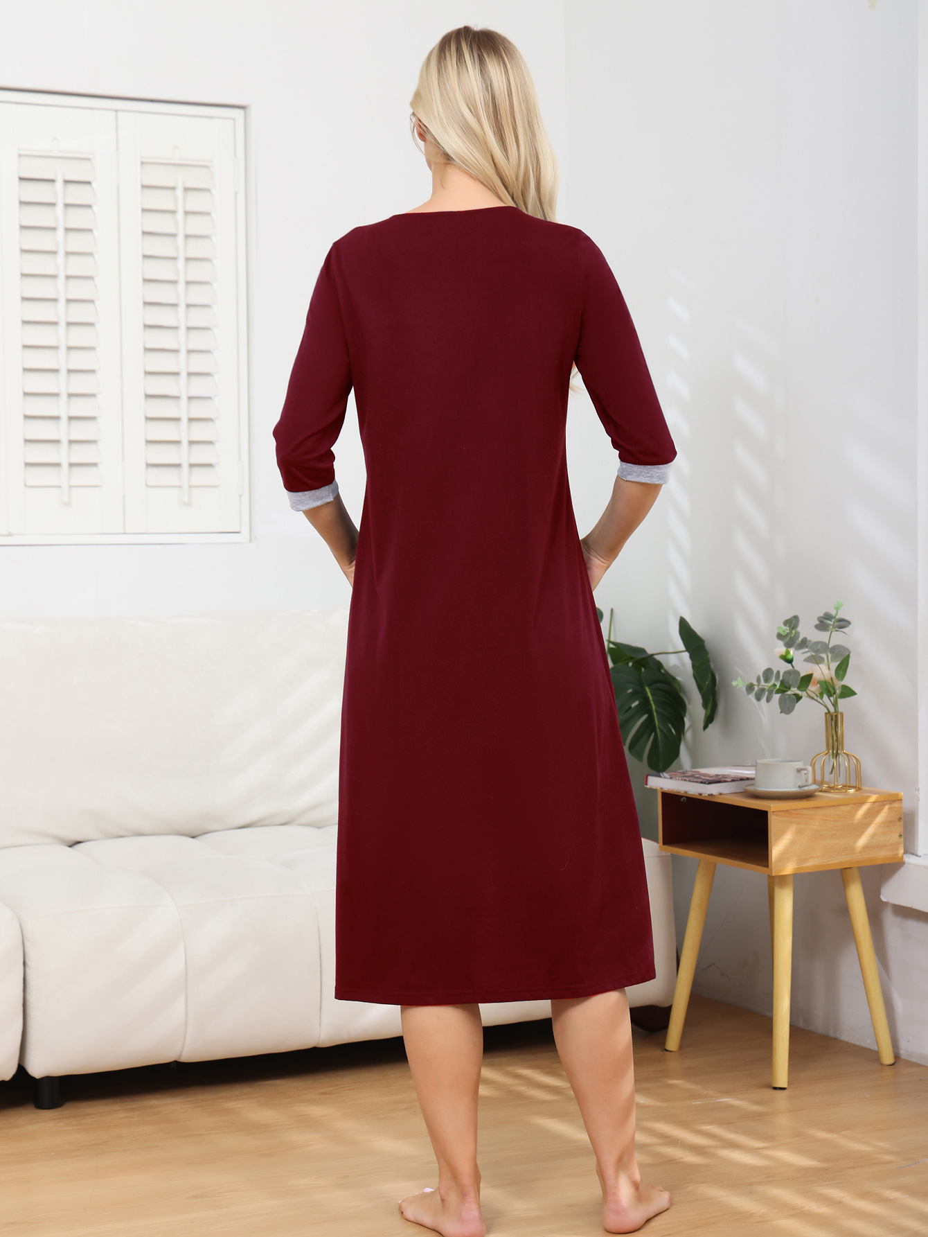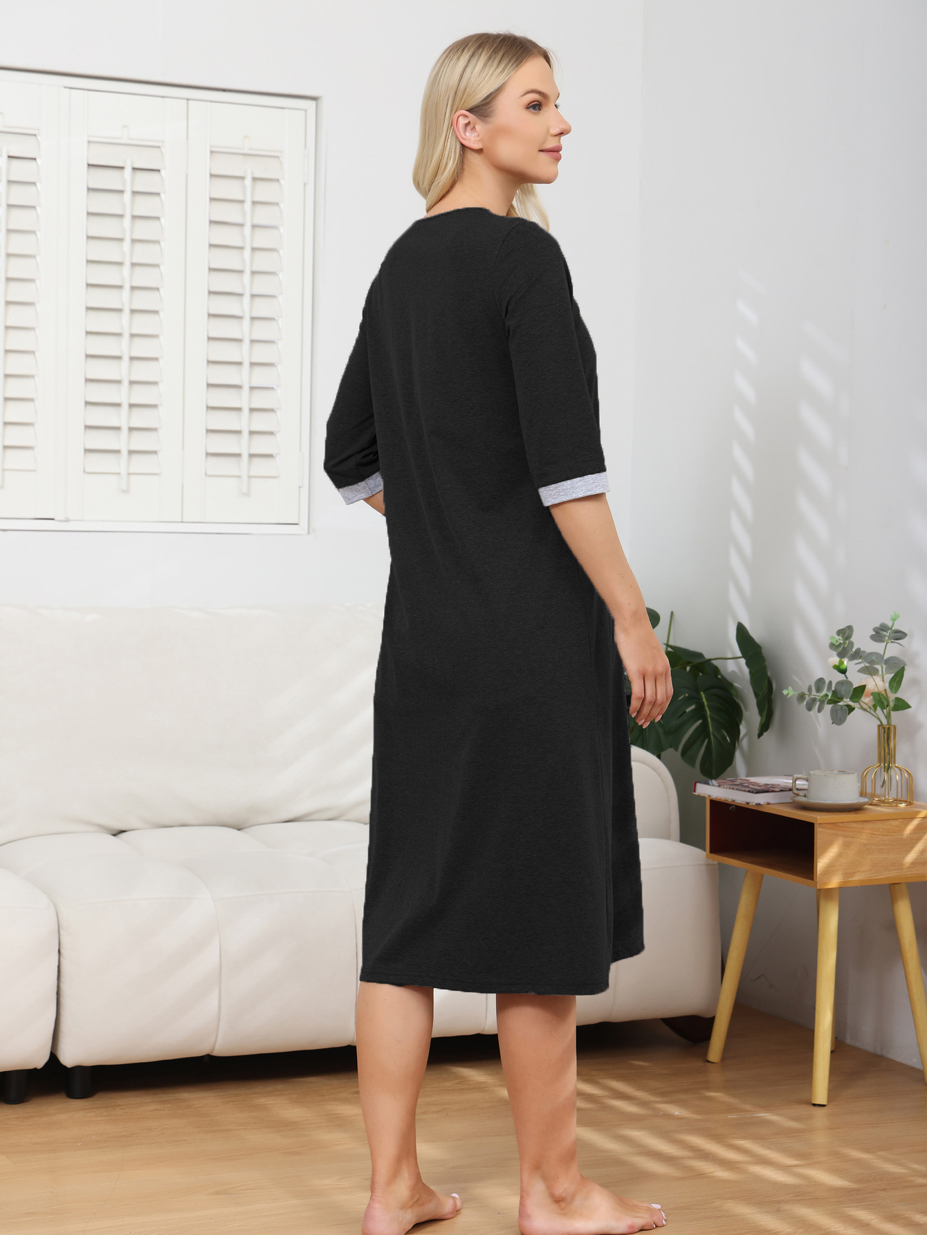 Amazon越境欧米2025春夏ローブ新作レディースゆったりホームウェア七分袖スプライスナイトガウン