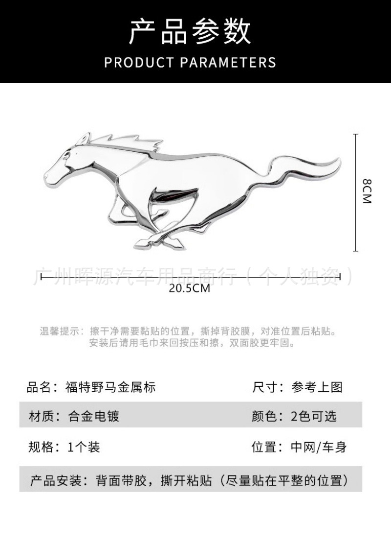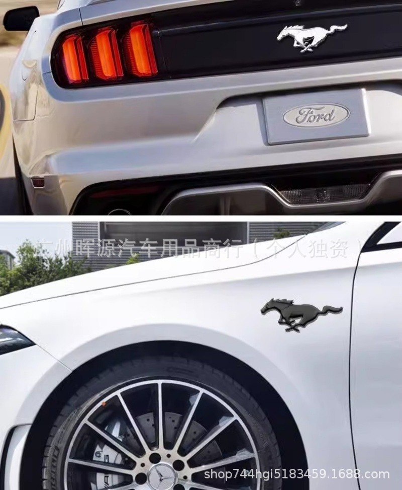 車のムスタングの車の標識の金属は葉子の板の側の標識を貼ります。