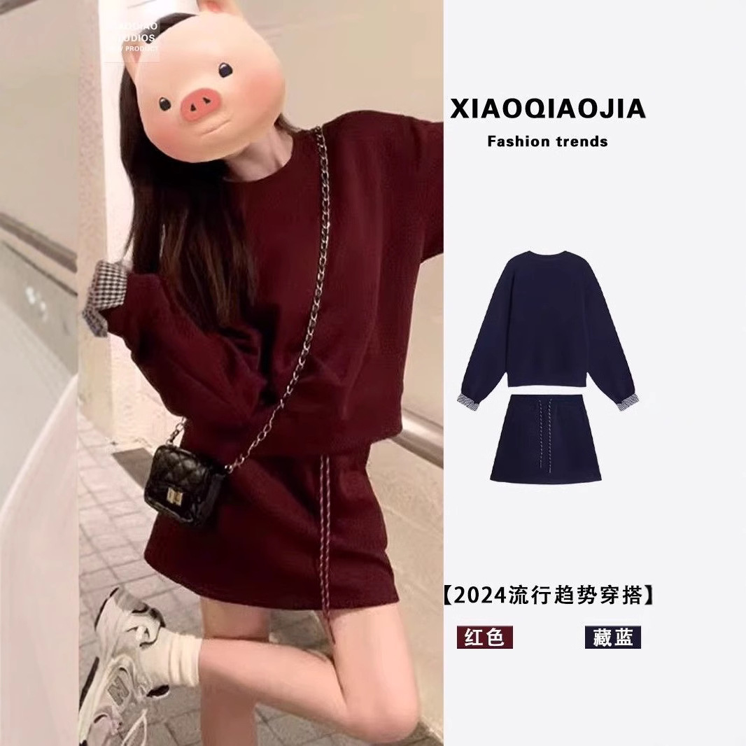 怠惰な風のカジュアルなスポーツのスーツのスカートの女性の春秋の新型のゆったりしているのが見えます。