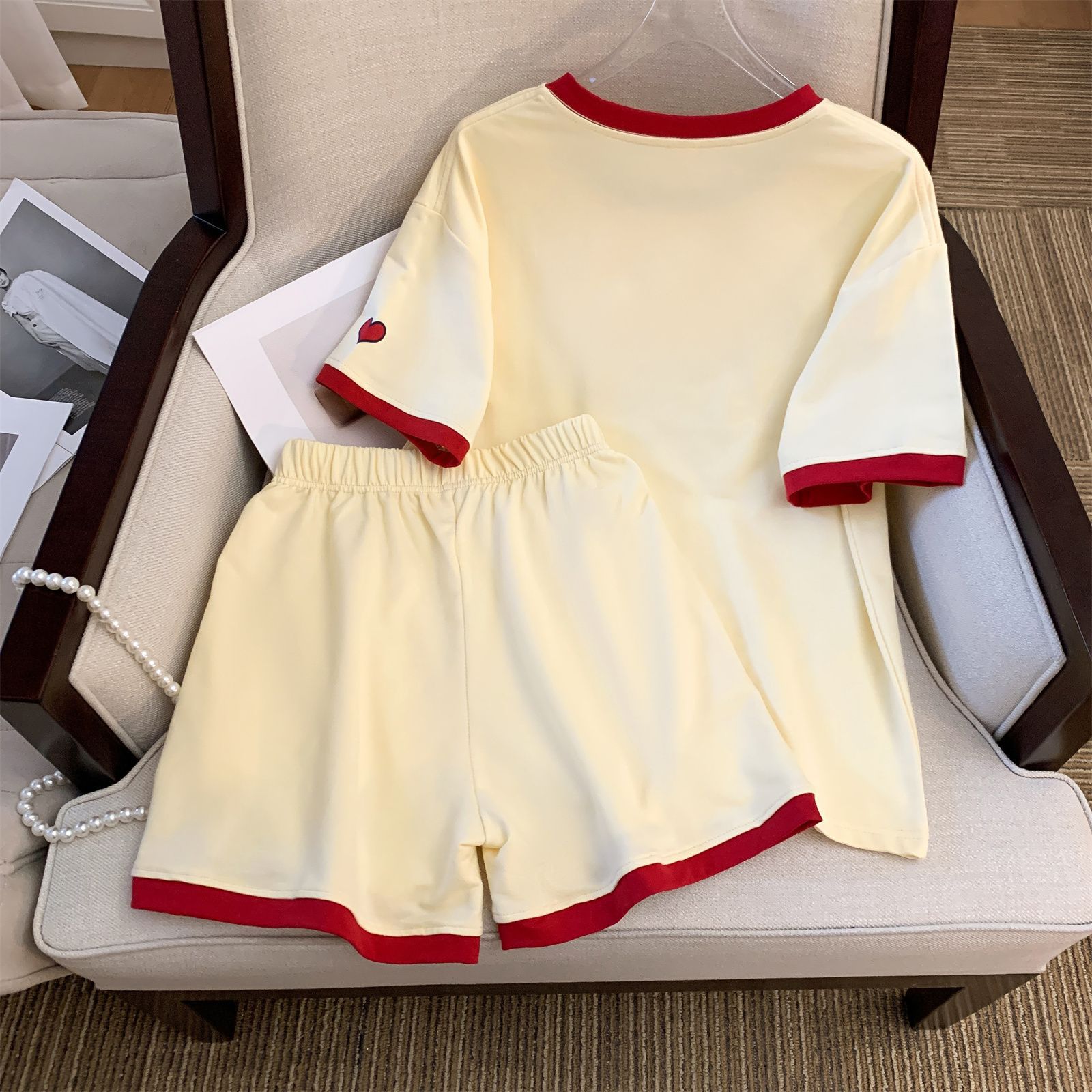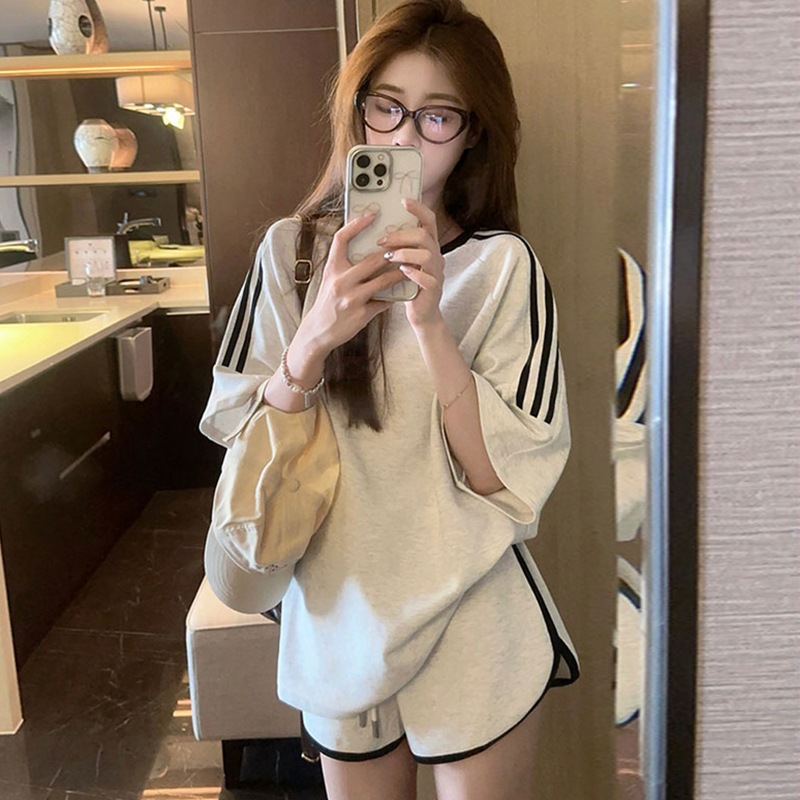 仿棉慵懒风休闲运动套装女夏季学生小个子宽松薄款短袖短裤两件套