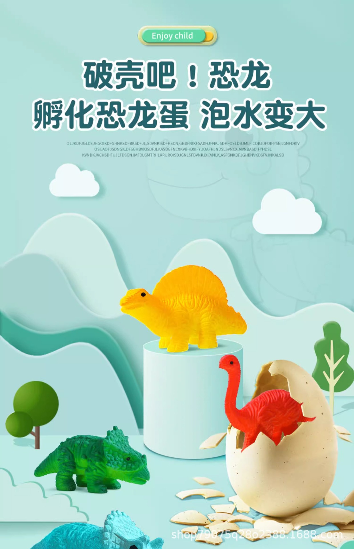 恐龙泡水孵化蛋儿童益智小玩具跨境热销新品泡水孵化膨胀变大仿真