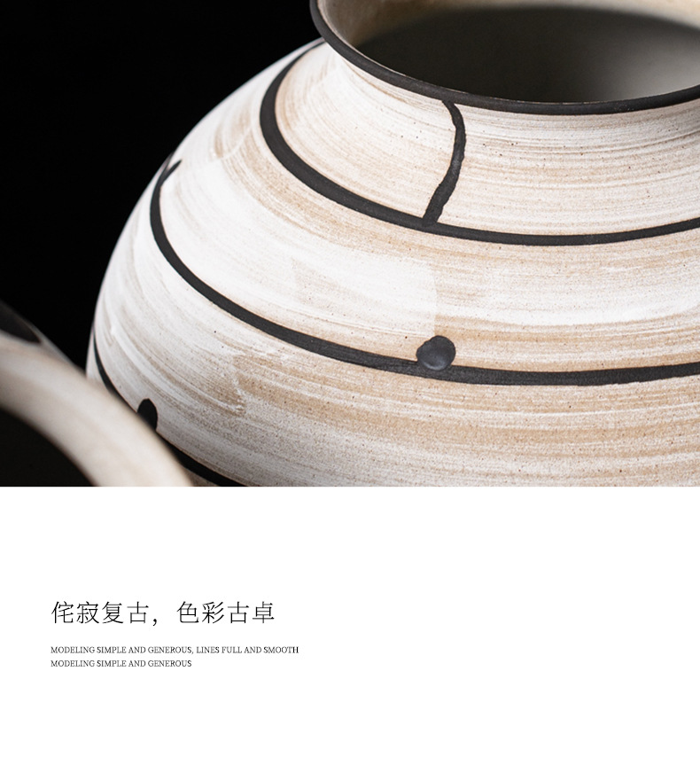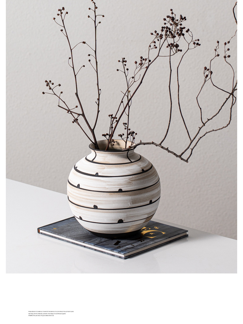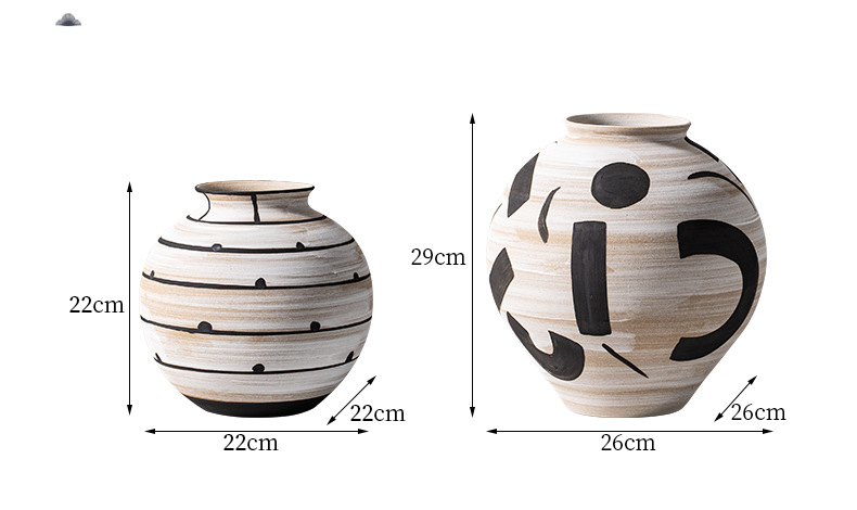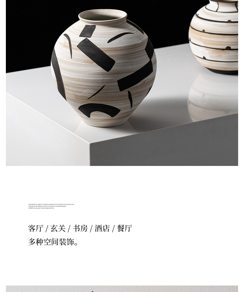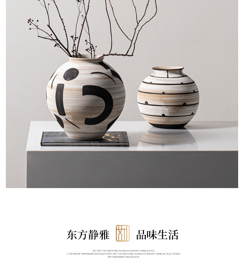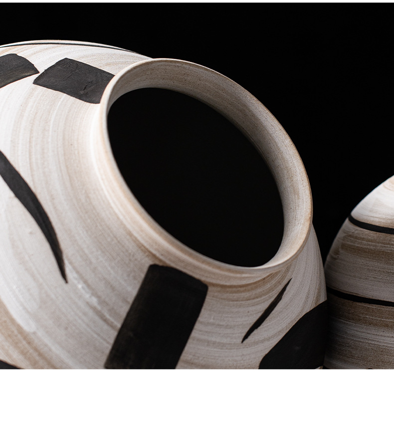 艺贝子 ヴィンテージ侘び寂び風 日本刀模様 手描き粗陶器 ホテル民宿用陶器花瓶飾り