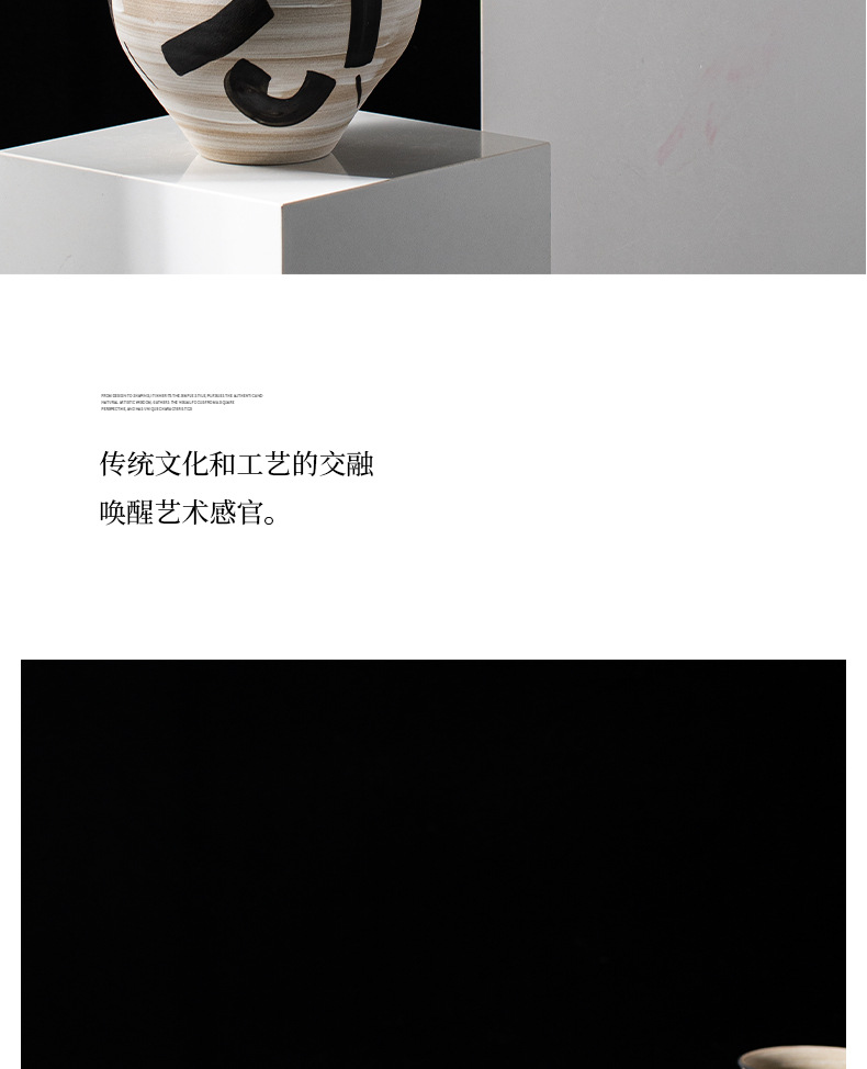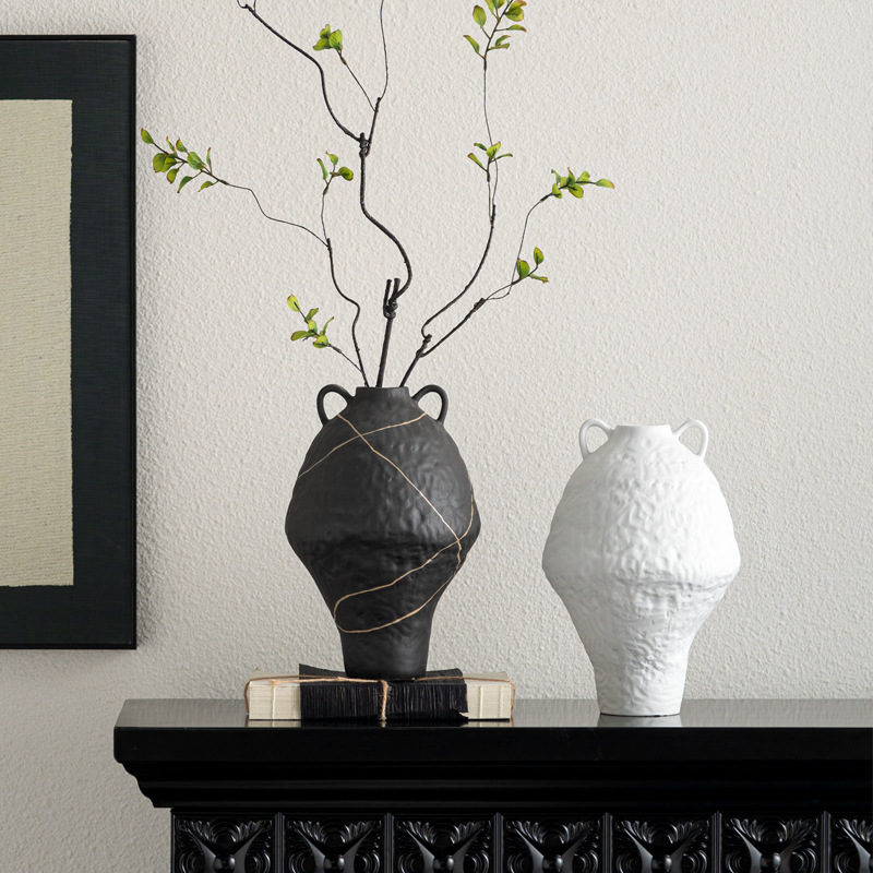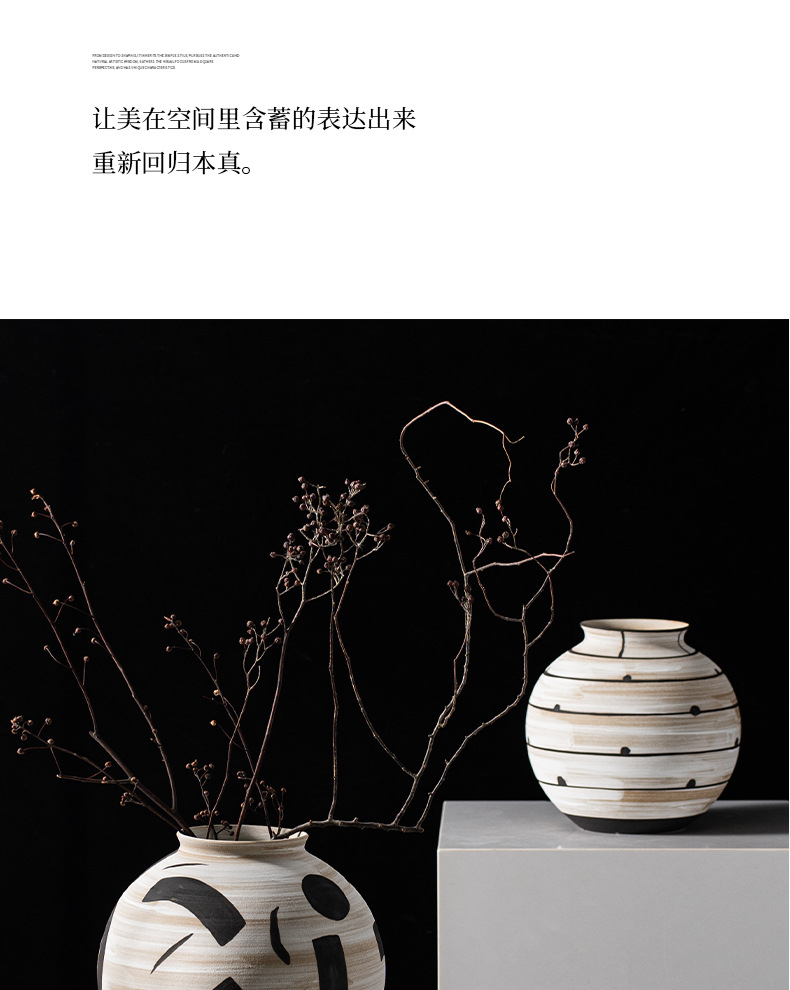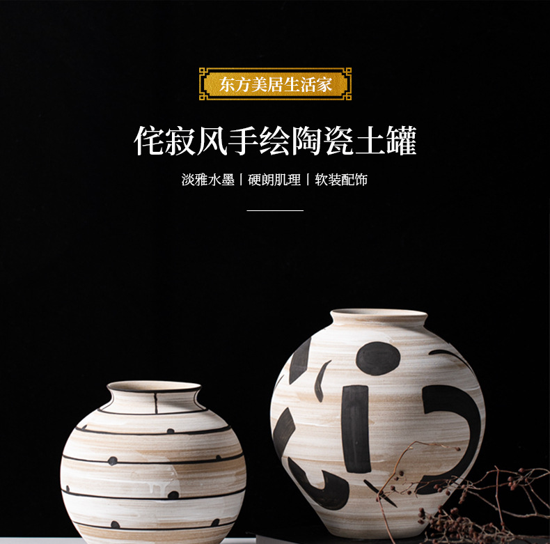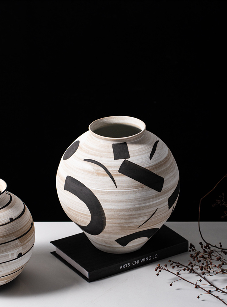艺贝子 ヴィンテージ侘び寂び風 日本刀模様 手描き粗陶器 ホテル民宿用陶器花瓶飾り