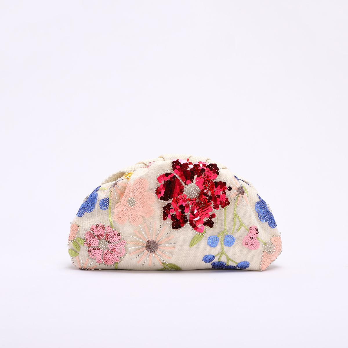 国境を越えた新しい亜麻竹節ハンドバッグ2024の新しい女性バッグ刺繍スパンコール欧米の女性が手に持って夕食バッグを持っている