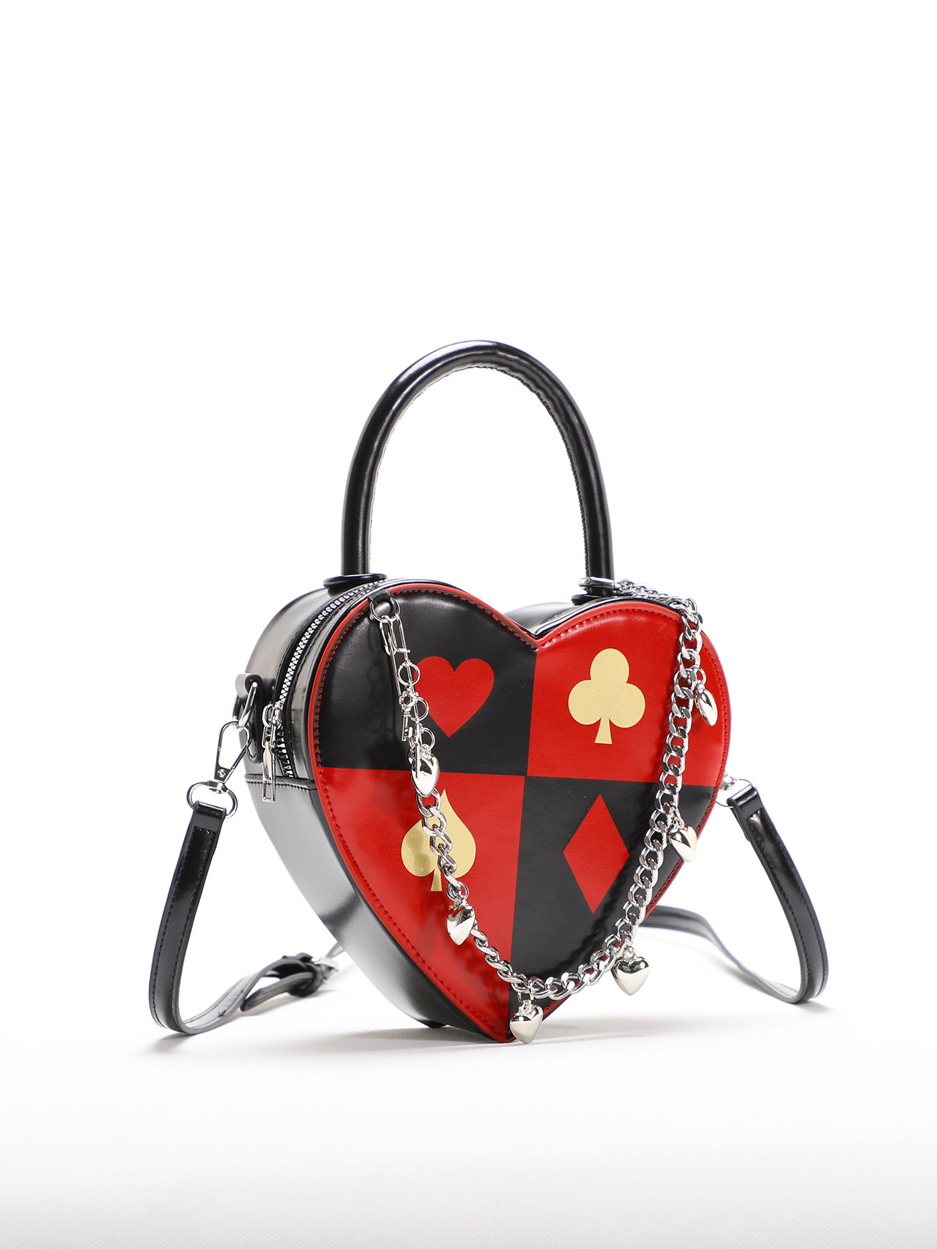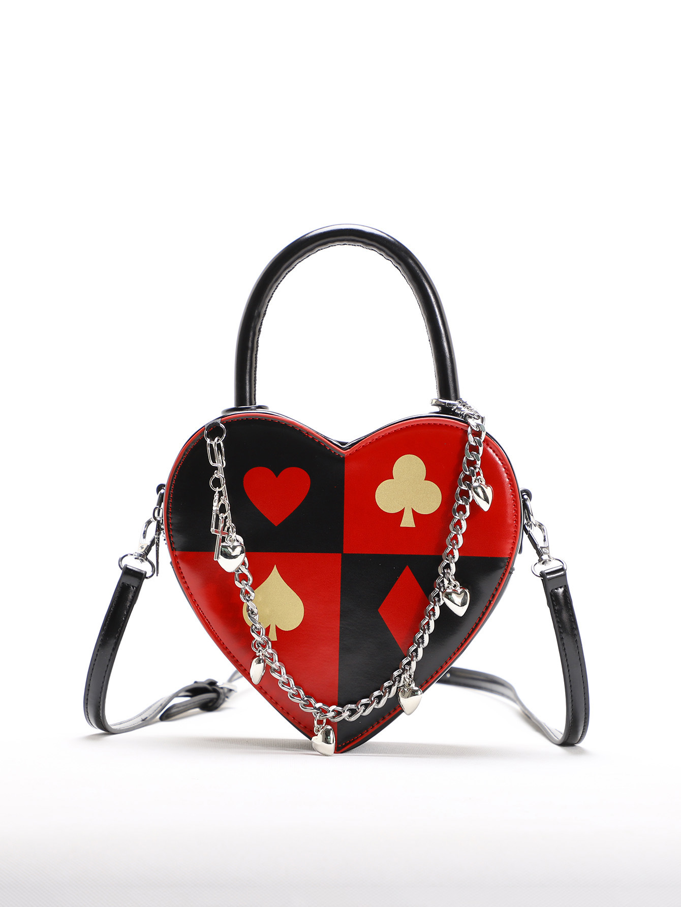 2025新型愛バッグ女性創意トランププリントハート型バッグチェーン愛ハンドバッグ洋気斜めショルダーバッグ