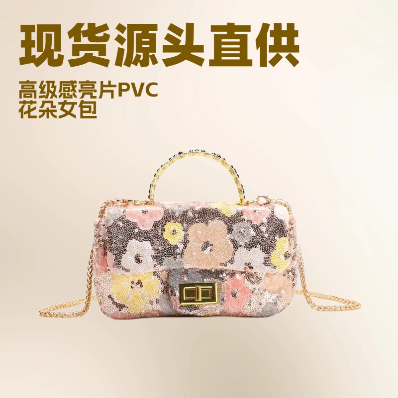 女性のカバンは新型の越境風重工PVCの明るい花の小さい方を包んできらきらしています。