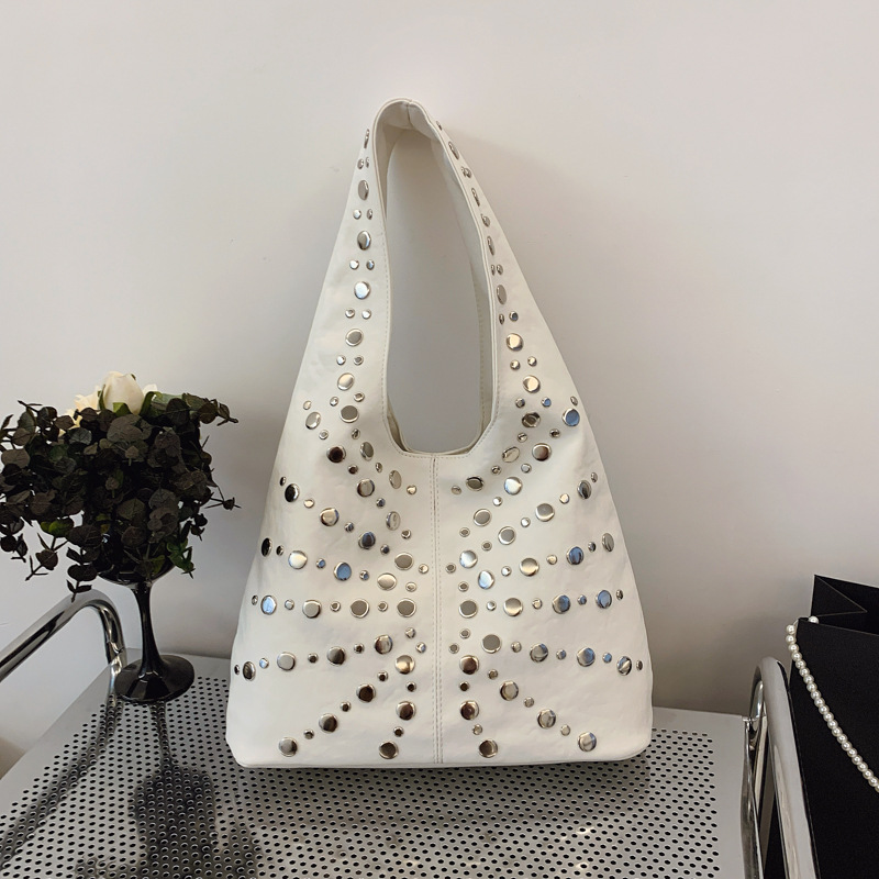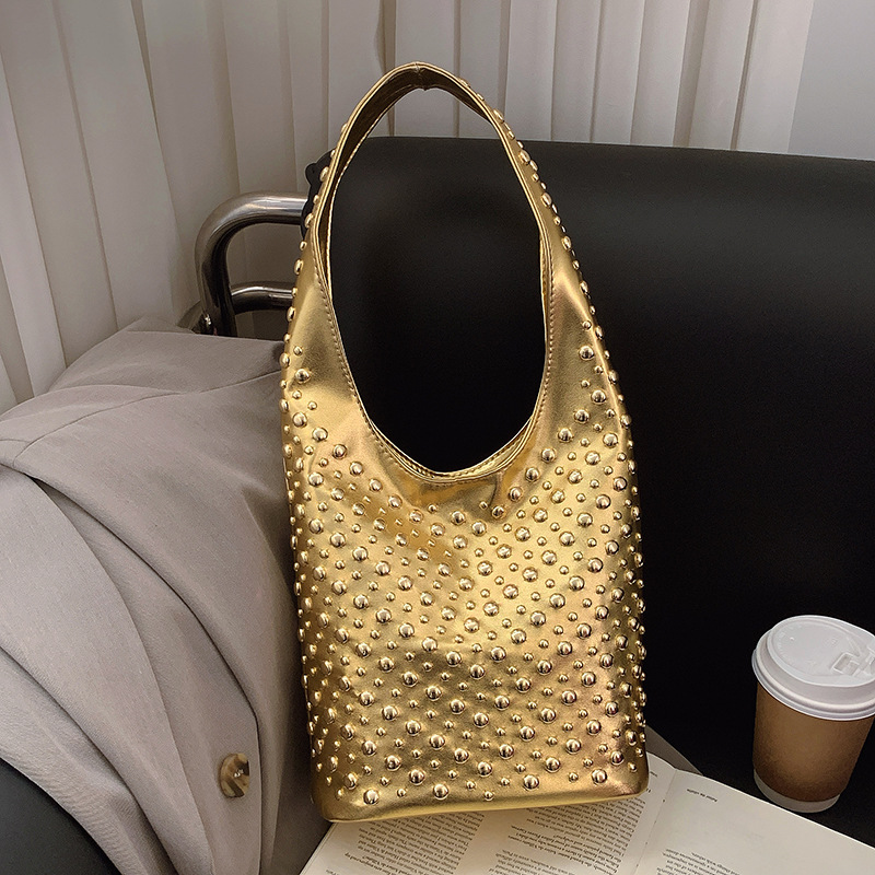 欧米のファッション的な脇下バッグ2025新型カジュアル個性潮クールな点リベットバケツバッグ