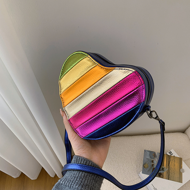 Insかわいい衝突色愛バッグ女2024新小衆デザイン虹ステッチハート型シングルショルダーバッグ