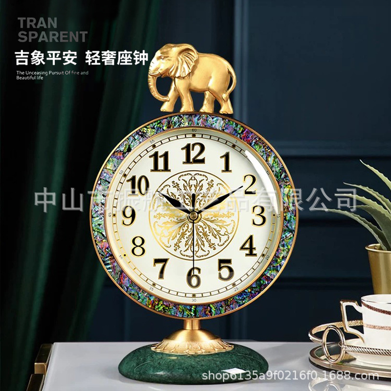 現代のシンプルな貝殻の置き時計の客間のファッション的な大気のデスクトップの時計の座式の純銅の家庭のハイエンドの軽い豪華な置物