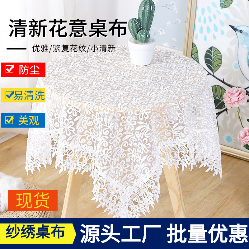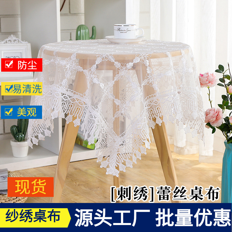 レーステーブルクロス茶卓蓋巾ベッドの頭箱蓋布現代シンプルな糸刺繍テーブルクロス小円卓防塵カバータオル