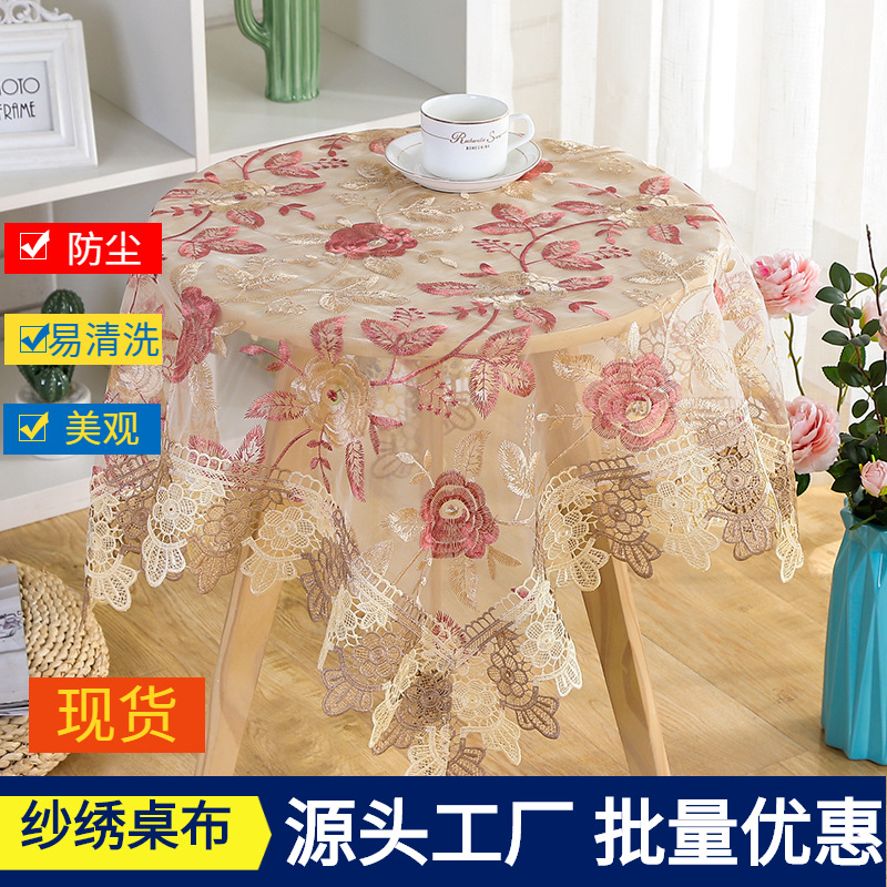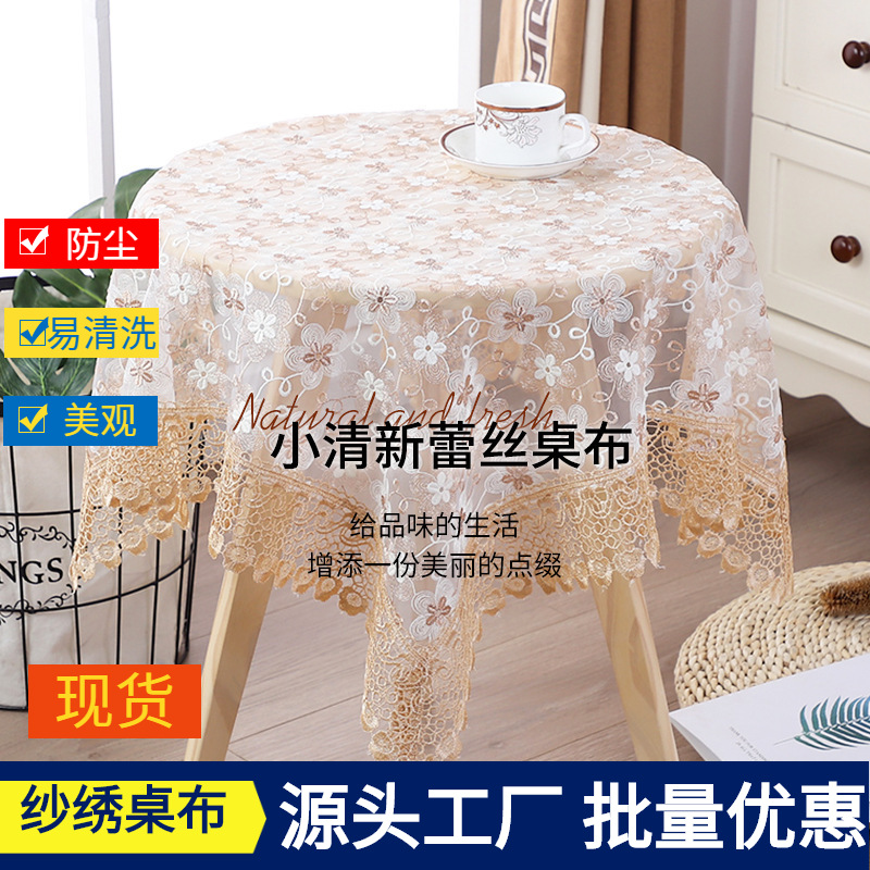 ワイドレース水溶刻紗対外貿易花型紗刺繍テーブルクロス高級感茶何蓋巾小円卓テーブルクロス