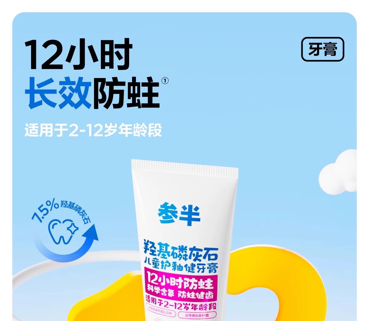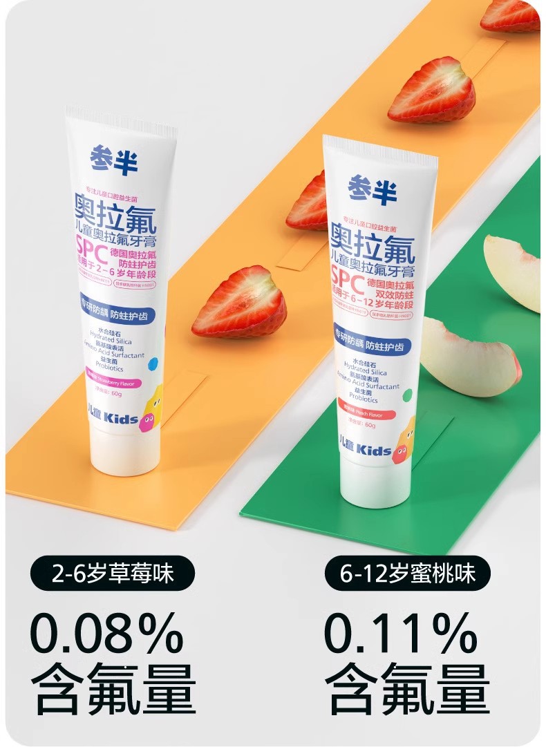 参半奥拉氟宝宝儿童牙膏3一6一12岁含氟防蛀牙龋齿不可吞咽