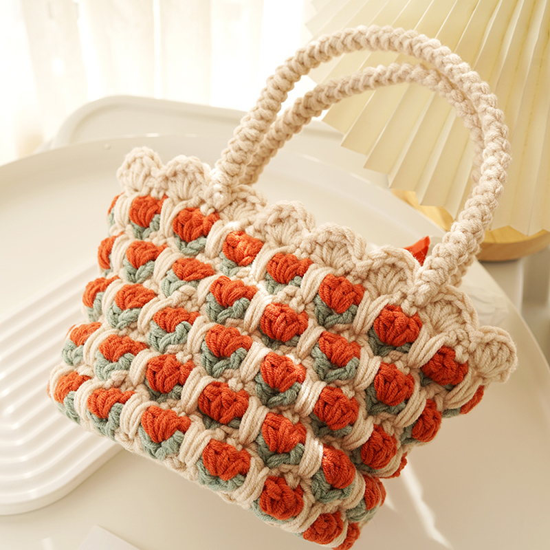 菲菲姐家チューリップ手編みハンドバッグ毛糸鉤針diy材料バッグ自作プレゼント彼女