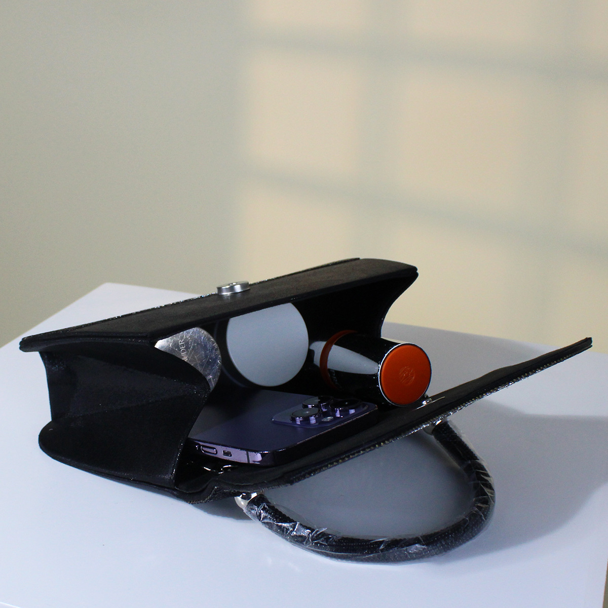 新商品のクロスボーダーにダイヤモンドを入れて、バッグを持っています。
