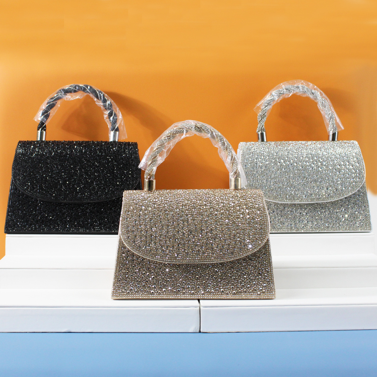 跨境时尚女士闪亮水钻晚宴包可搭配礼服晚装包时尚气质优雅手拿包
