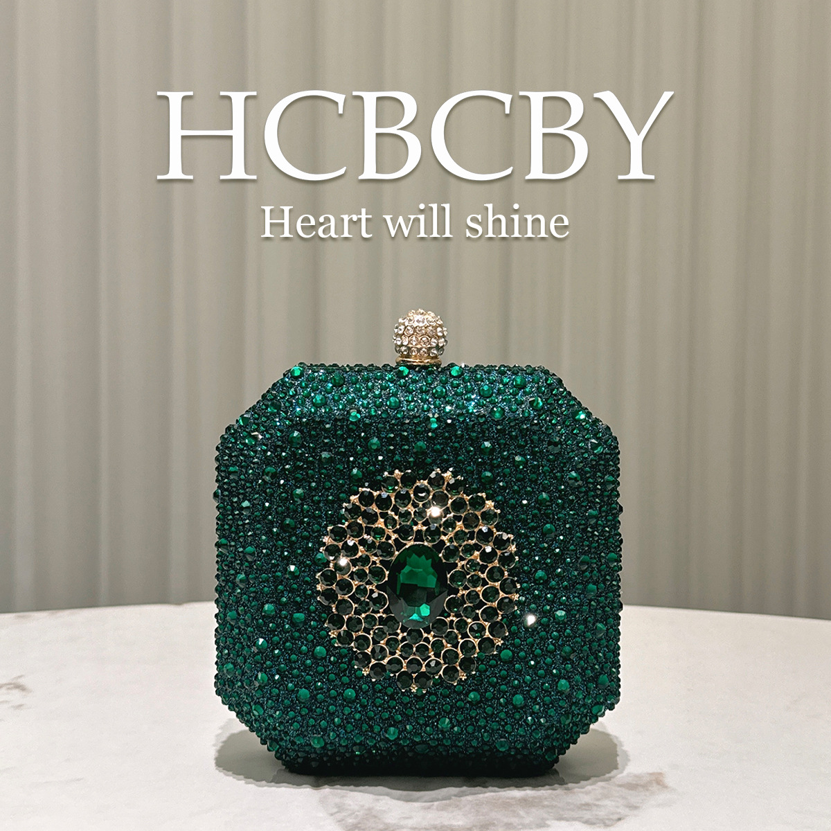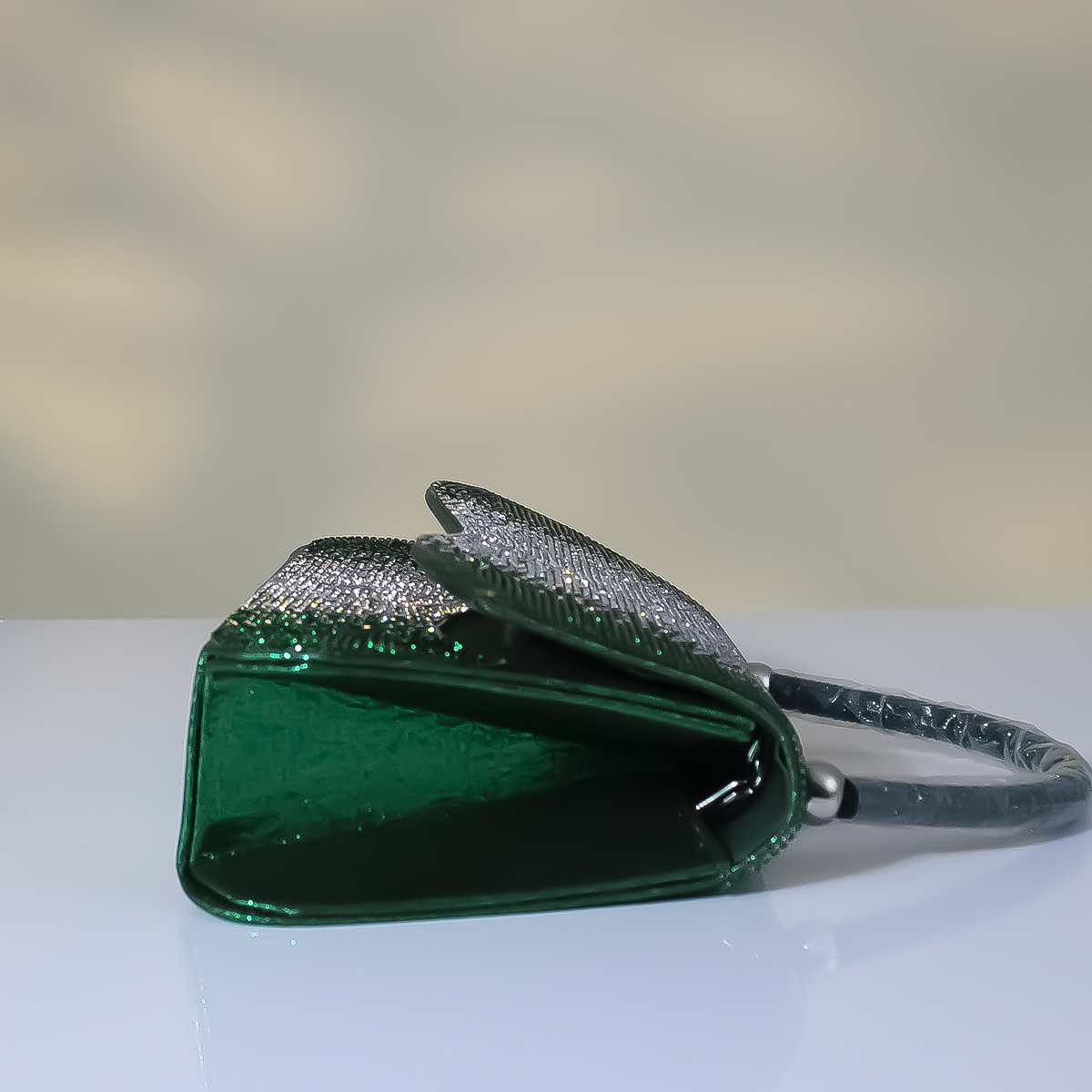 墨の緑のきらめきのダイヤモンドの高級感のダイヤモンドのボタンの装飾の小さいハンドバッグの女性のファッションの個性のミニの箱型の晩餐の包み