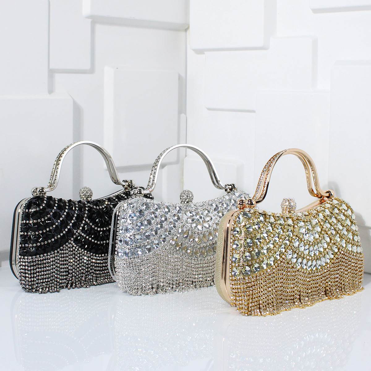 クロスボーダー热い贩売ファッションドリルベルベットイブニングバッグ黒の高贵なドレスバッグレトロな旗ガウンバッグパーティー花嫁バッグ