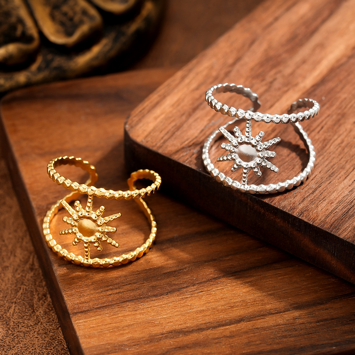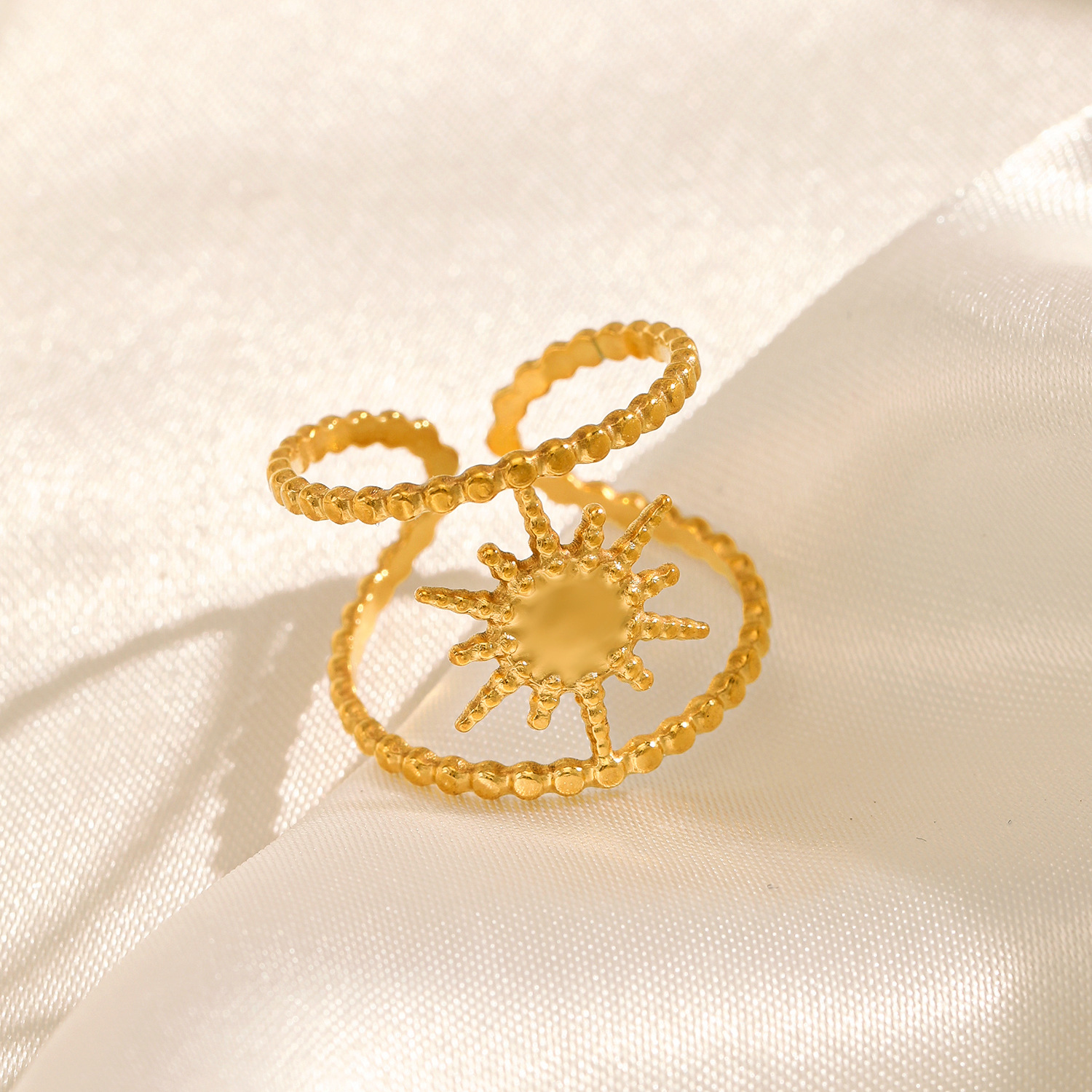 欧米の誇張ステンレスの八芒星の指輪の女性の個性の開口部は18kの真金の電気めっきのチタンの指輪を調節することができます。