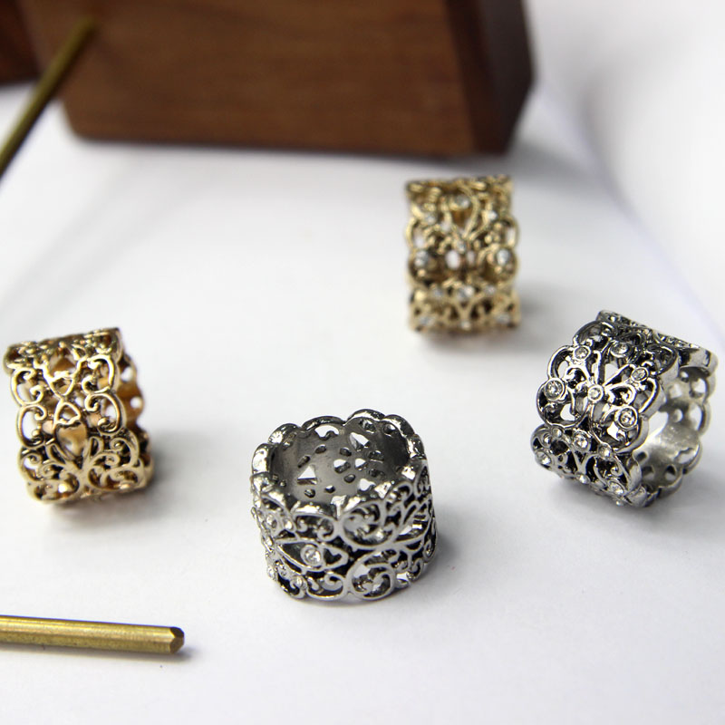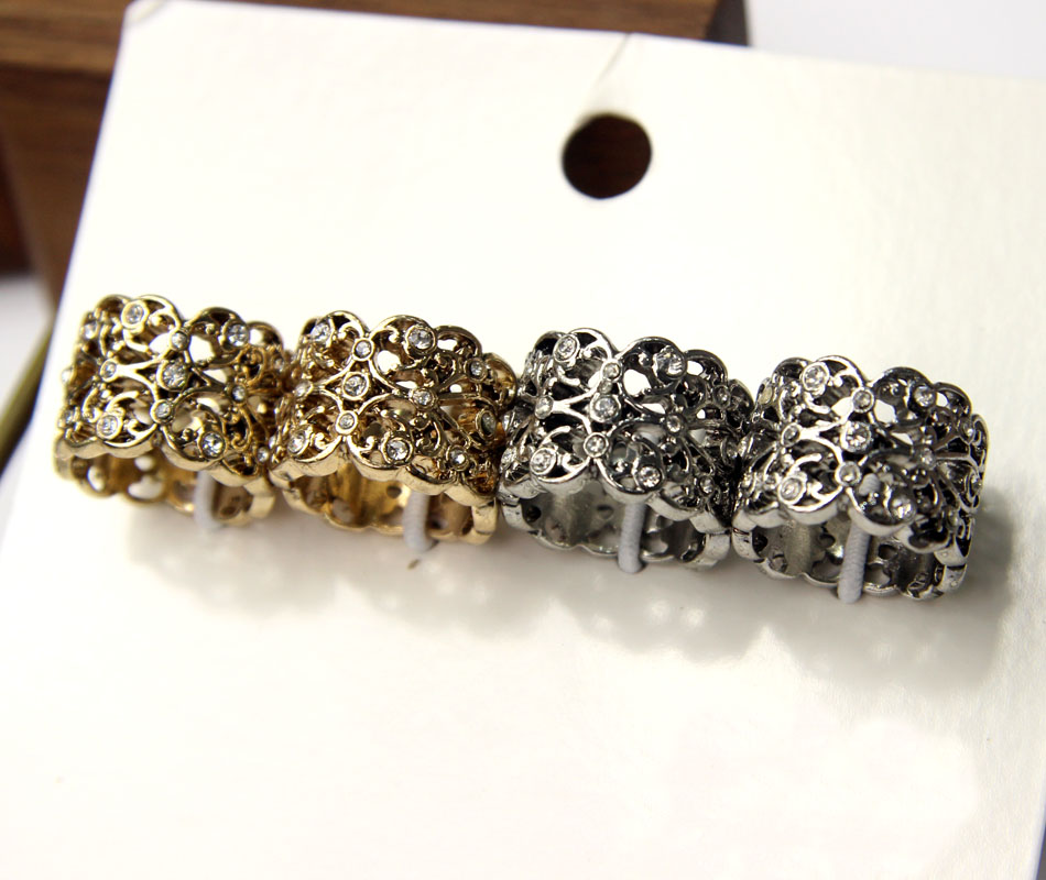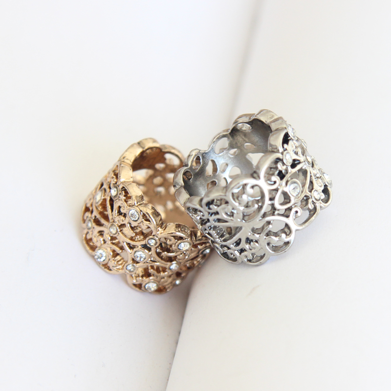 宝宝王瑞欧米の対外貿易のアクセサリの日韓のアクセサリーの復古の花の広い面の透かし彫りはダイヤモンドの関節の指輪を入れますZZ03