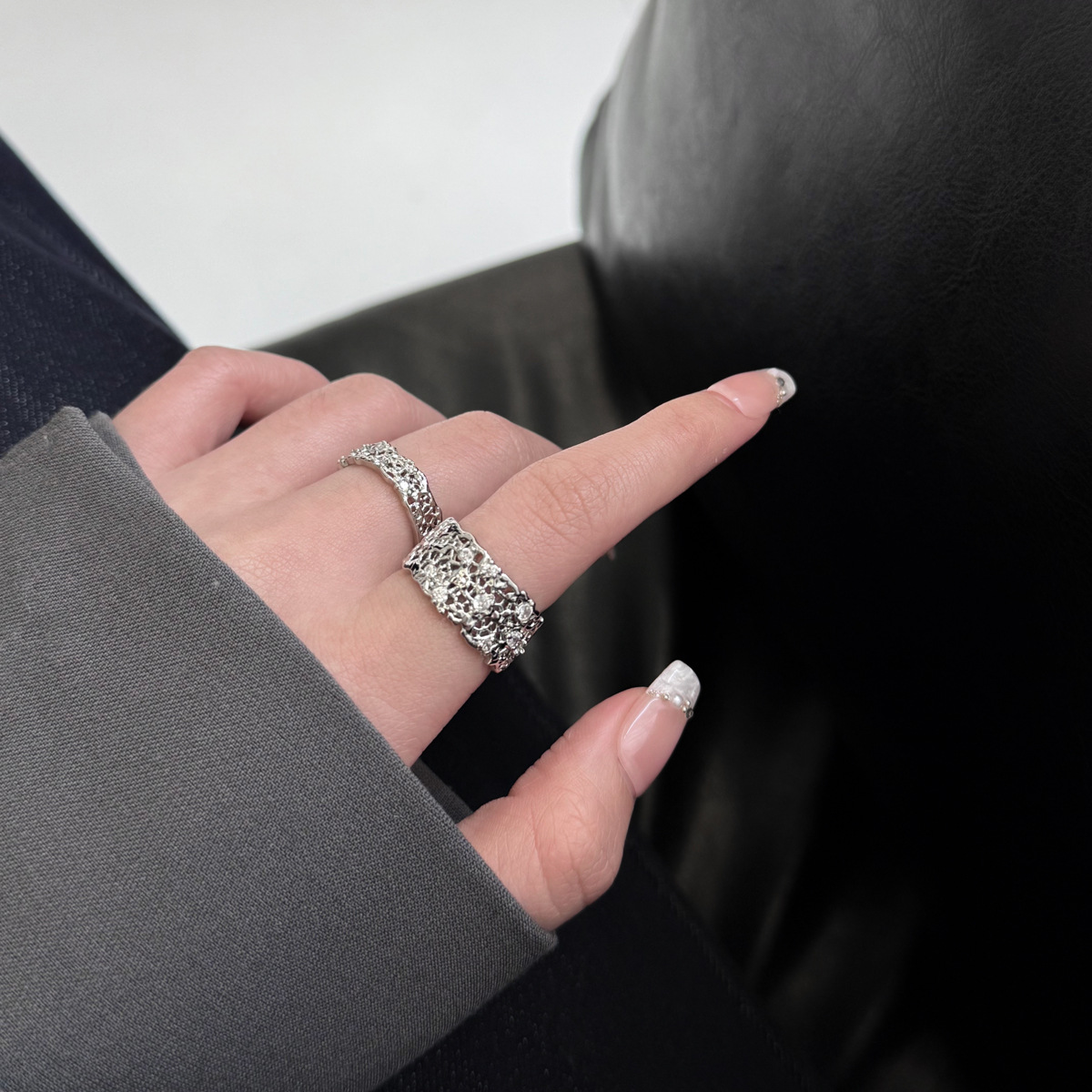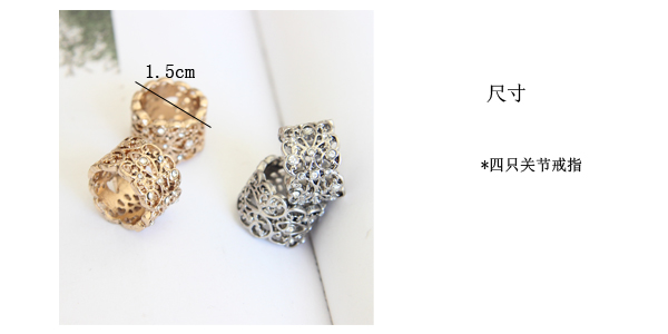 饰品日韩首饰复古花朵宽面镂空镶钻关节戒指ZZ03